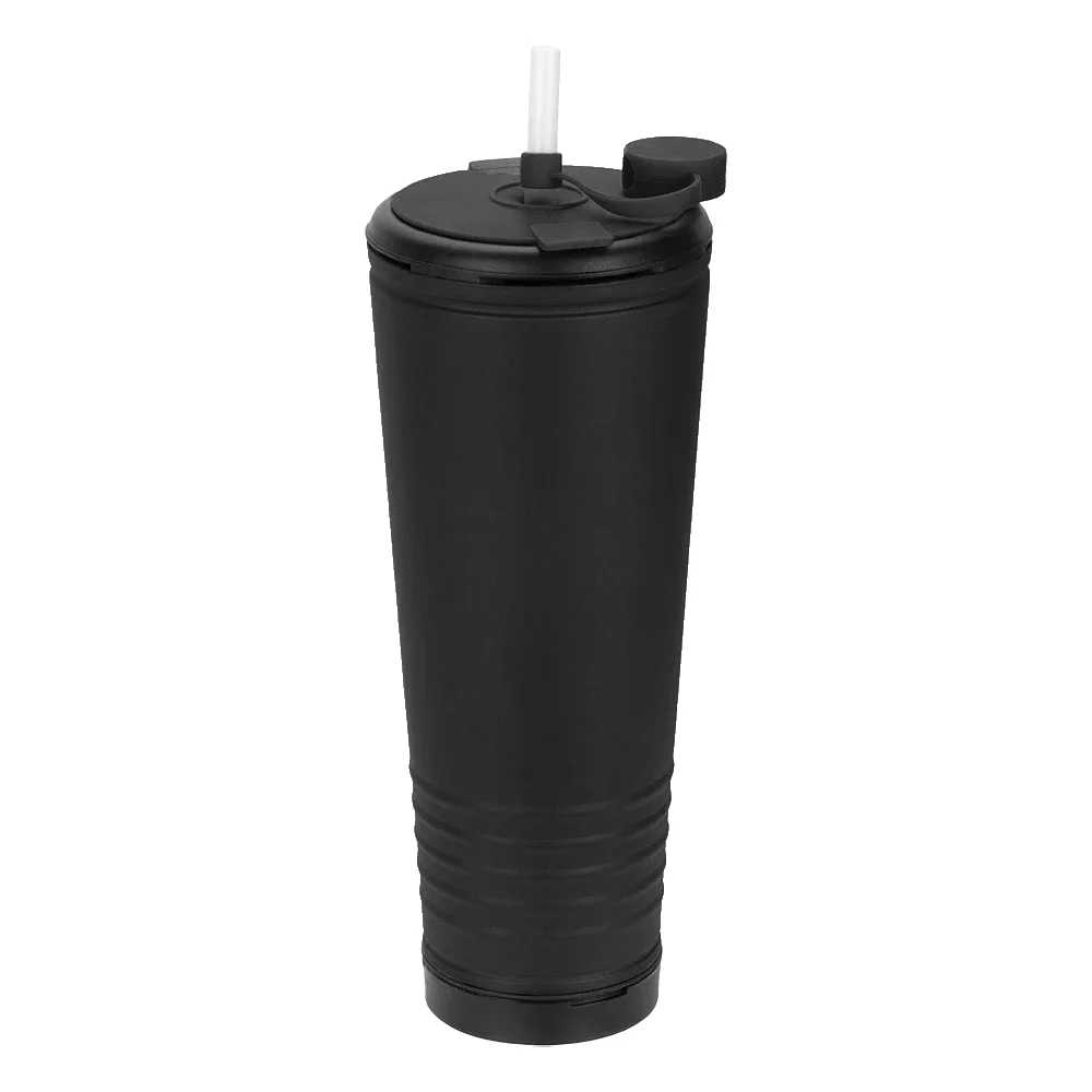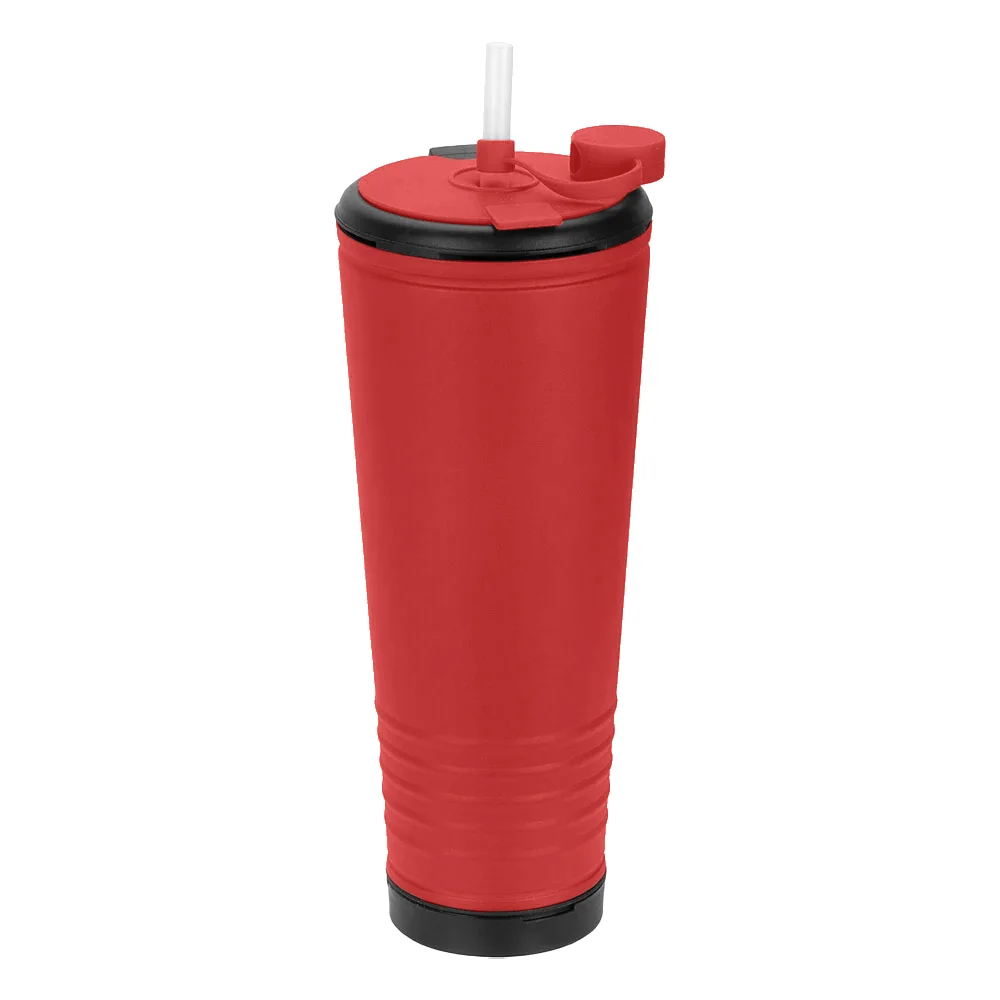 • Color-matched rubber press-on lid with slits to insert plastic straw