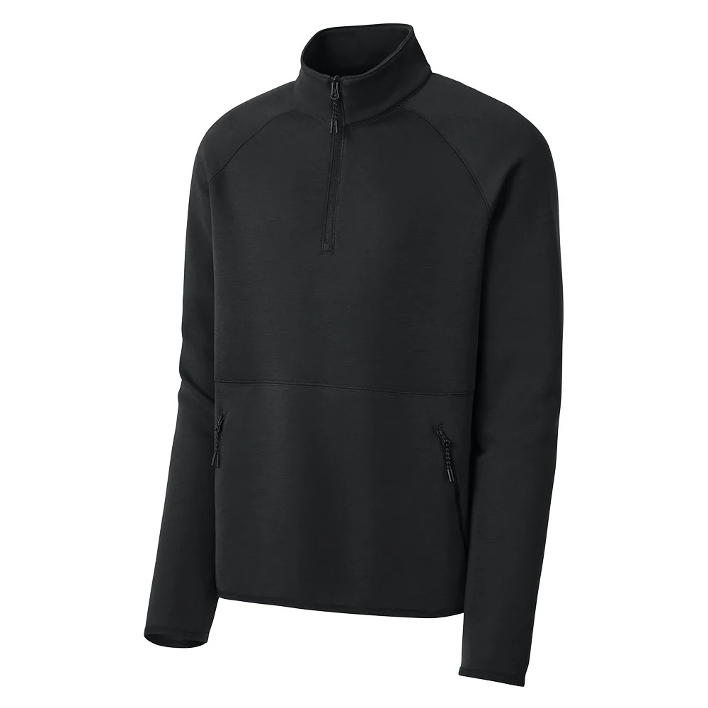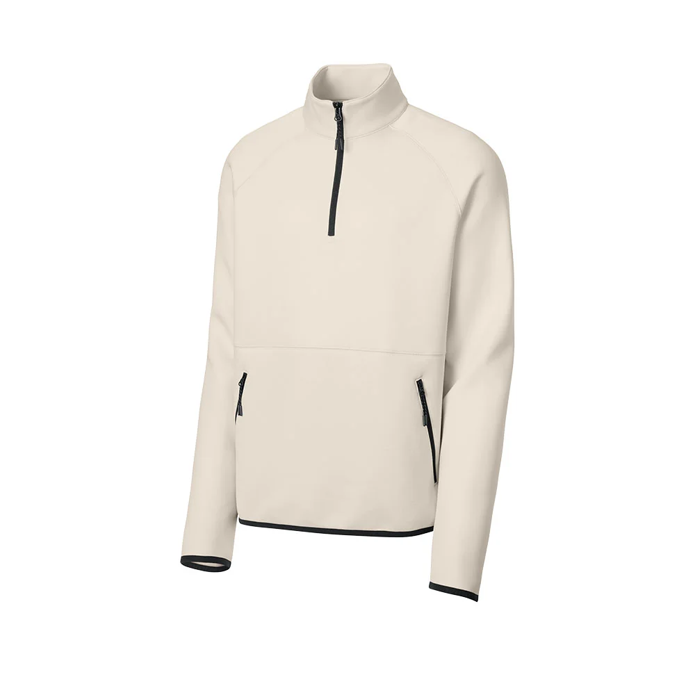 • Constructed with a midweight spacer knit fabrication, this modern quarter-zip can be worn after training, while traveling, or as a corporate layer.