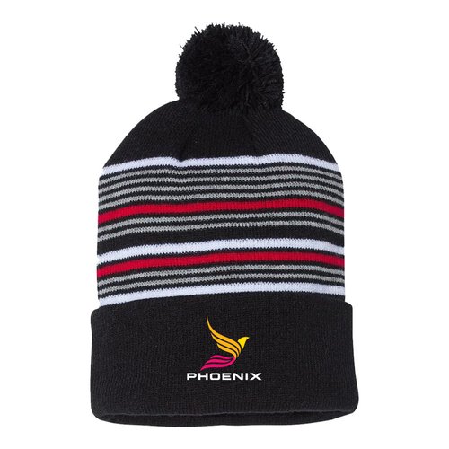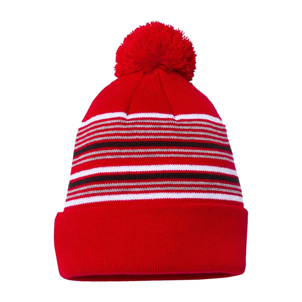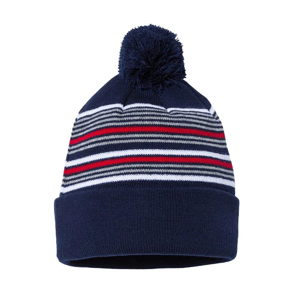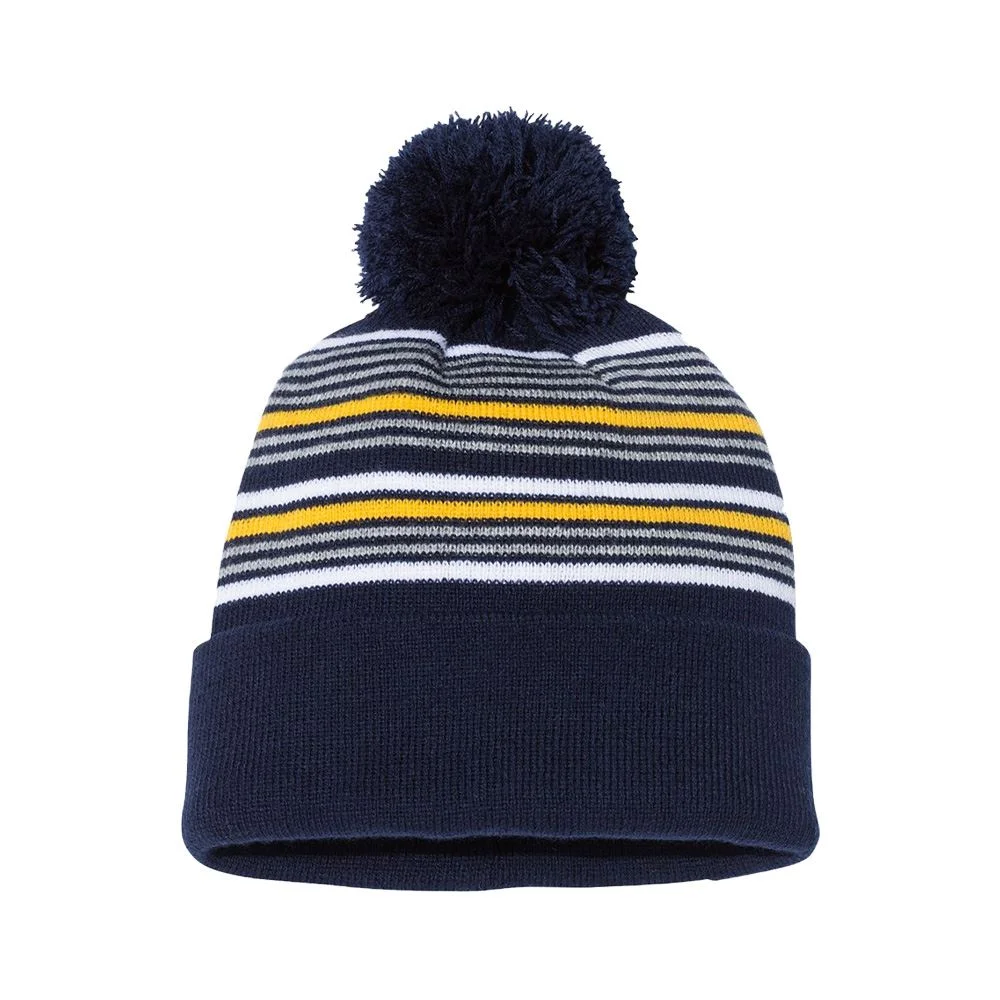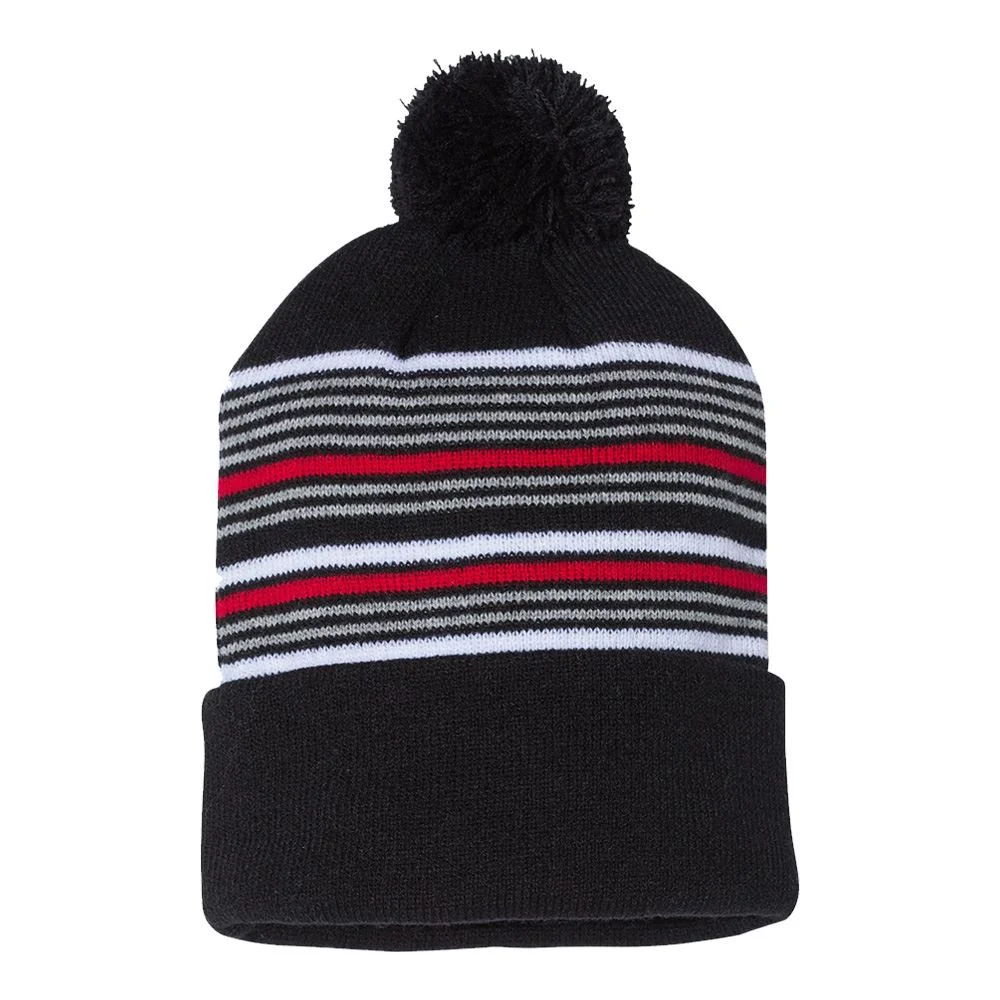 Sportsman 12" Striped Pom-Pom Knit Beanie - Embroidered Personalization Available