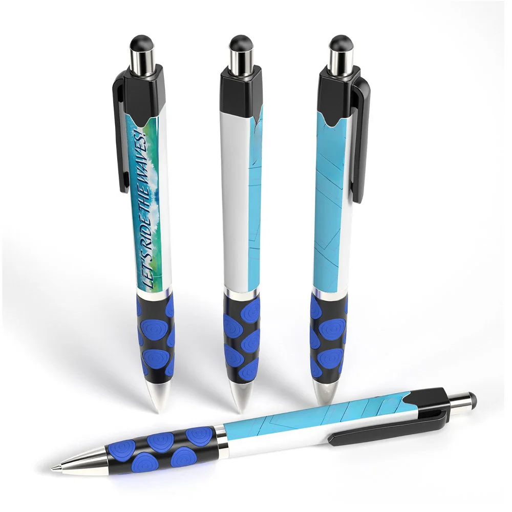 Squared Retractable Dotted Grip Stylus Pen - Full Color Personalization Available