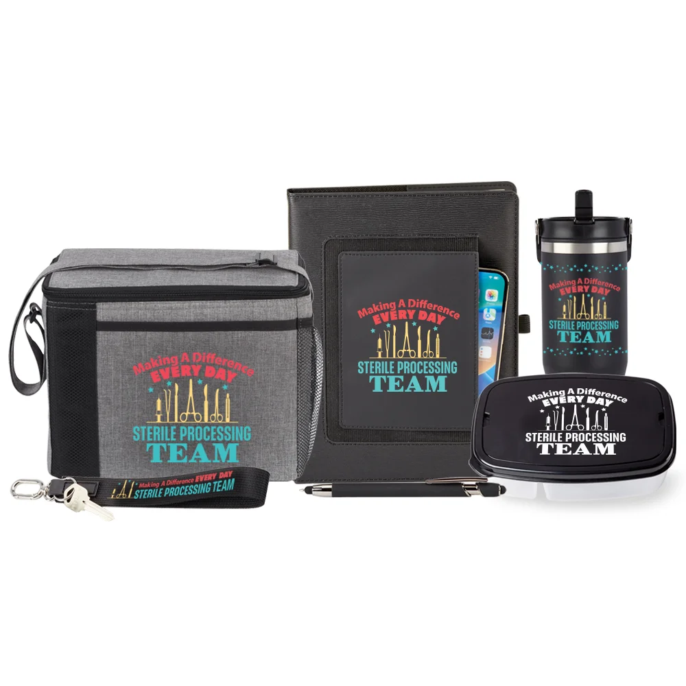 Lunch/Cooler Bag: 11" X 9" X 6"; Food Container: 9" X 2 1/2", X 6"; Journal: 7 1/2" X 10"; Water Bottle: 30-Oz.;, Lanyard Keytag: 8 5/8" X 1 1/4" X 3/8"