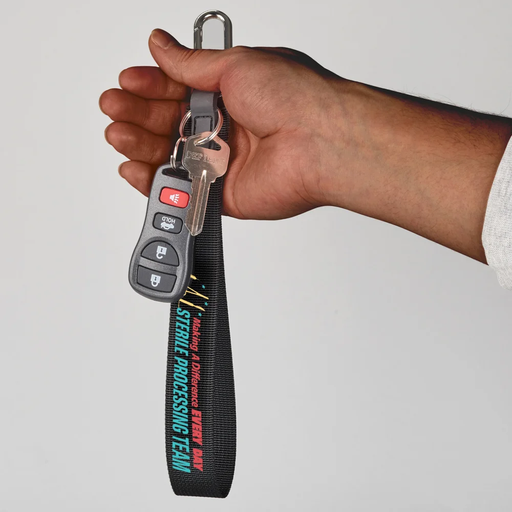 Never Lose Your Keys Water-Repellent Key Finder: Oversized hand strap with comfortable grip loop; Heavy-duty carabiner and key ring; Performance polyester fabric is lightweight, water repellent, and super durable