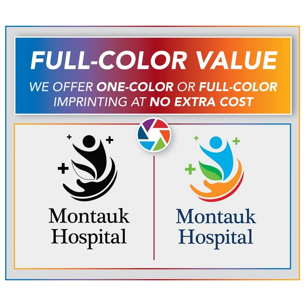 • We offer one-color or full-color imprinting at no extra cost!