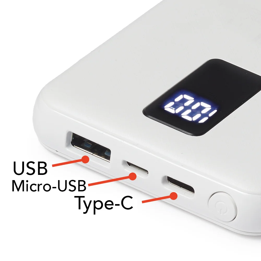 • Multiple ports: USB A, Micro USB, Type C
