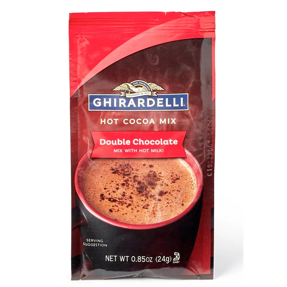 • Includes a packet of Ghirardelli® Double Chocolate Hot Cocoa Mix