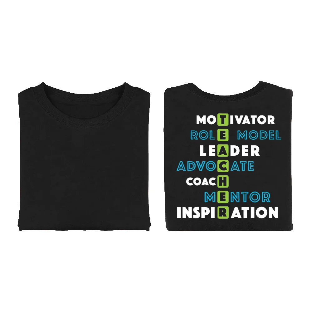 Teacher: Motivator, Innovator, Educator Unisex 2-Sided Short-Sleeved T-Shirt - Silkscreened Personalization Available