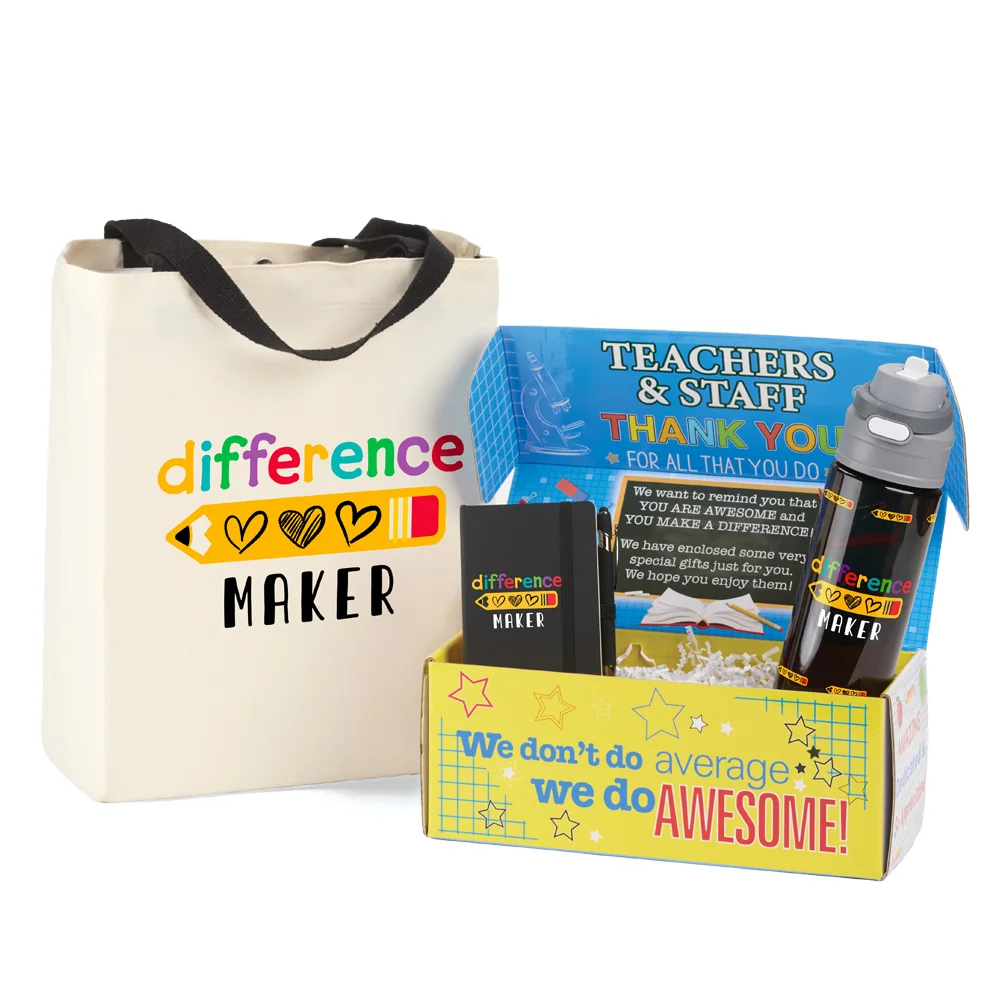 Gift box included; Message inside lid: We want to remind you that you are awesome and you make a difference! We have enclosed some very special gifts just for you. We hope you enjoy them!