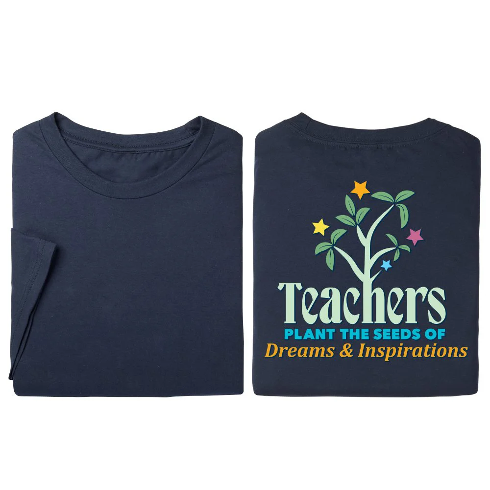Teachers Plant the Seeds of Dreams & Inspirations Unisex 2-Sided Short-Sleeved T-Shirt - Silkscreened Personalization Available