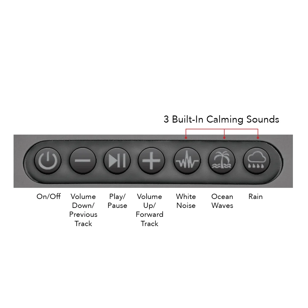 • 3 soothing sounds: White Noise, Ocean Waves, Rain