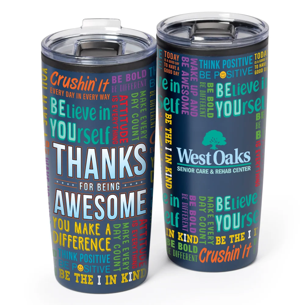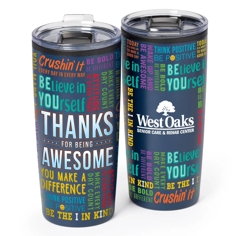 Thanks for Being Awesome Motivational Word Cloud Teton Stainless-Steel Tumbler 20 oz. - Personalization Available