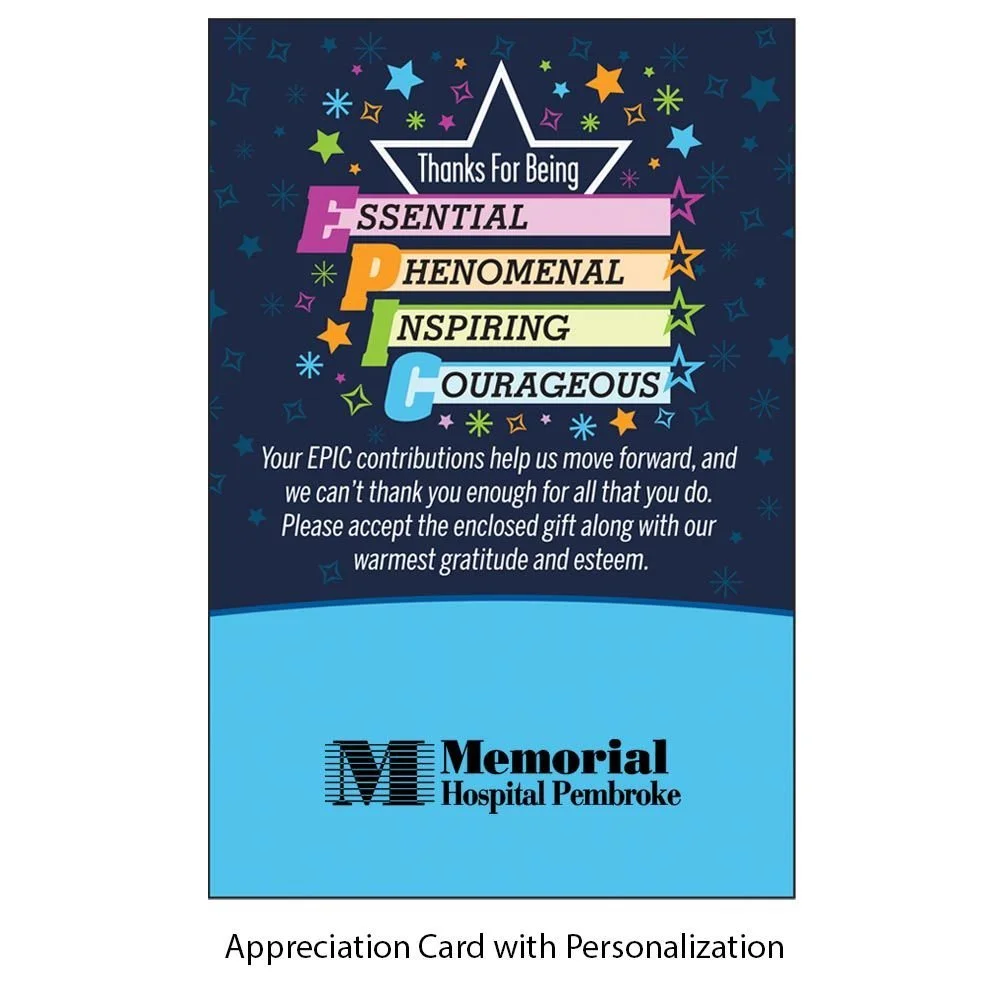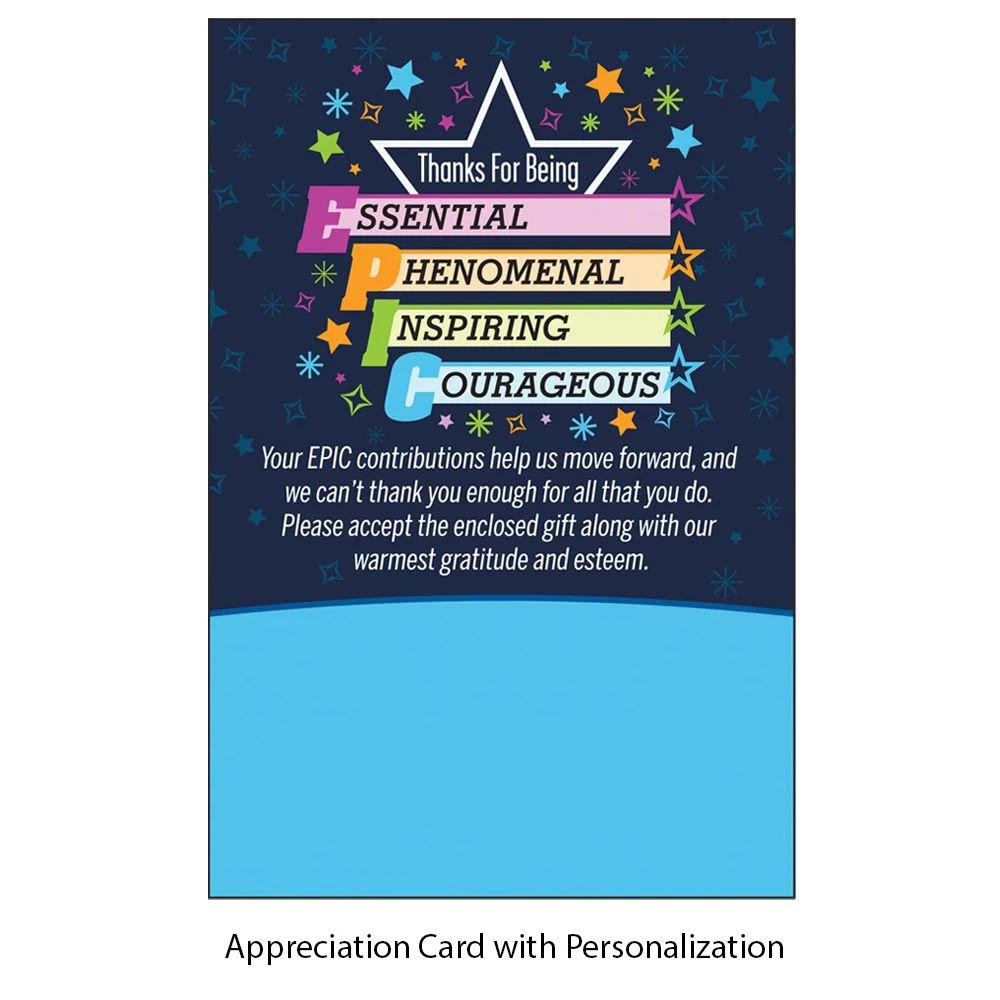 Personalized Appreciation Card:Thanks For Being EPIC: Your EPIC contributions help us move forward, and we can't thank you enough for all that you do. Please accept the enclosed gift along with our warmest gratitude and esteem.