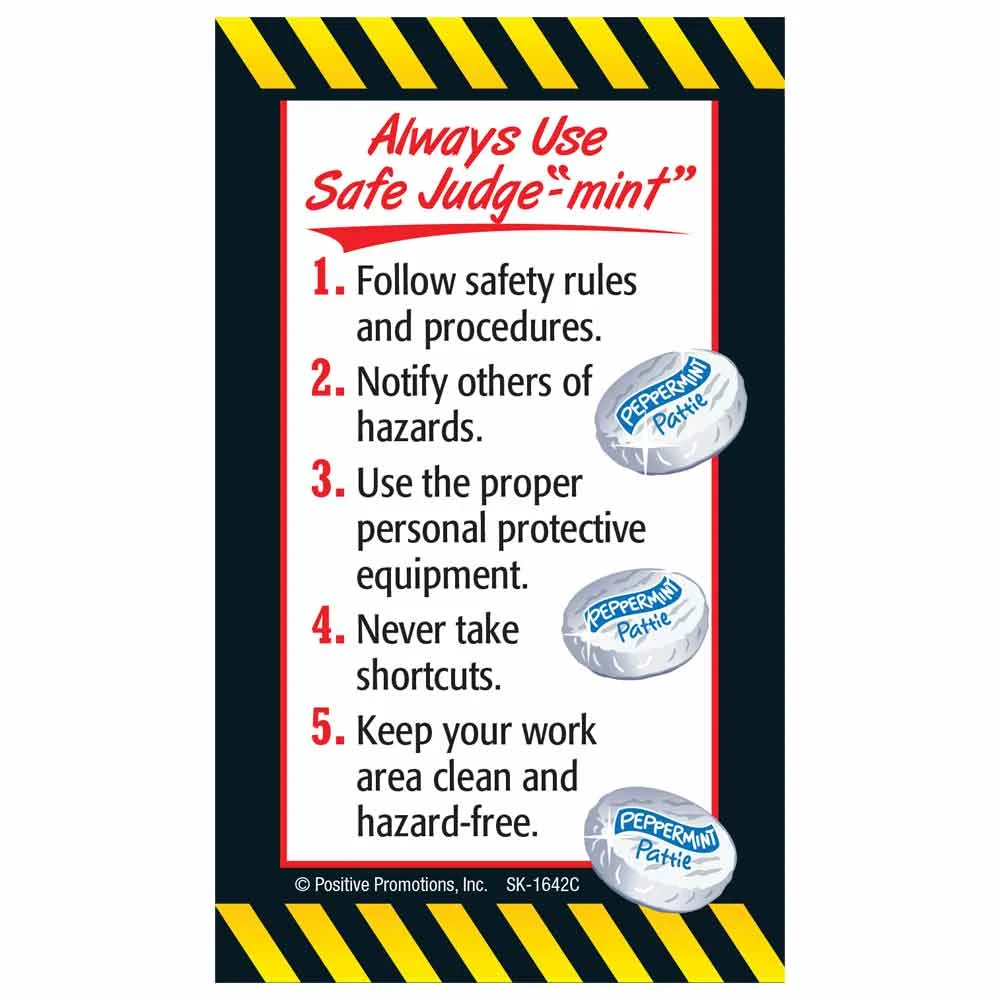 • Keepsake card encourages staff to always use safe judg-"mint" with 5 helpful tips
