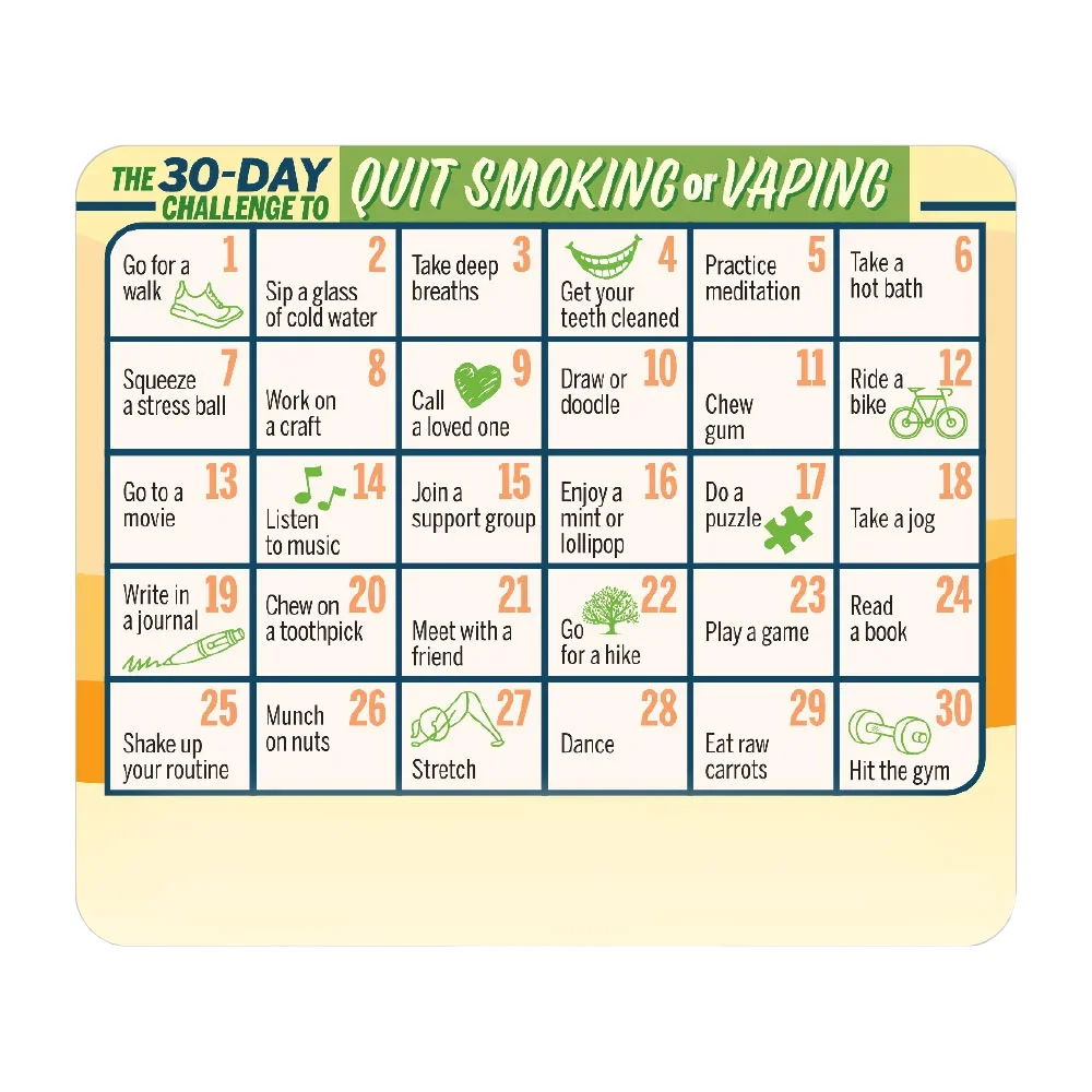 • Help people quit smoking or vaping with this 30-day grid featuring one good health habit to try each day