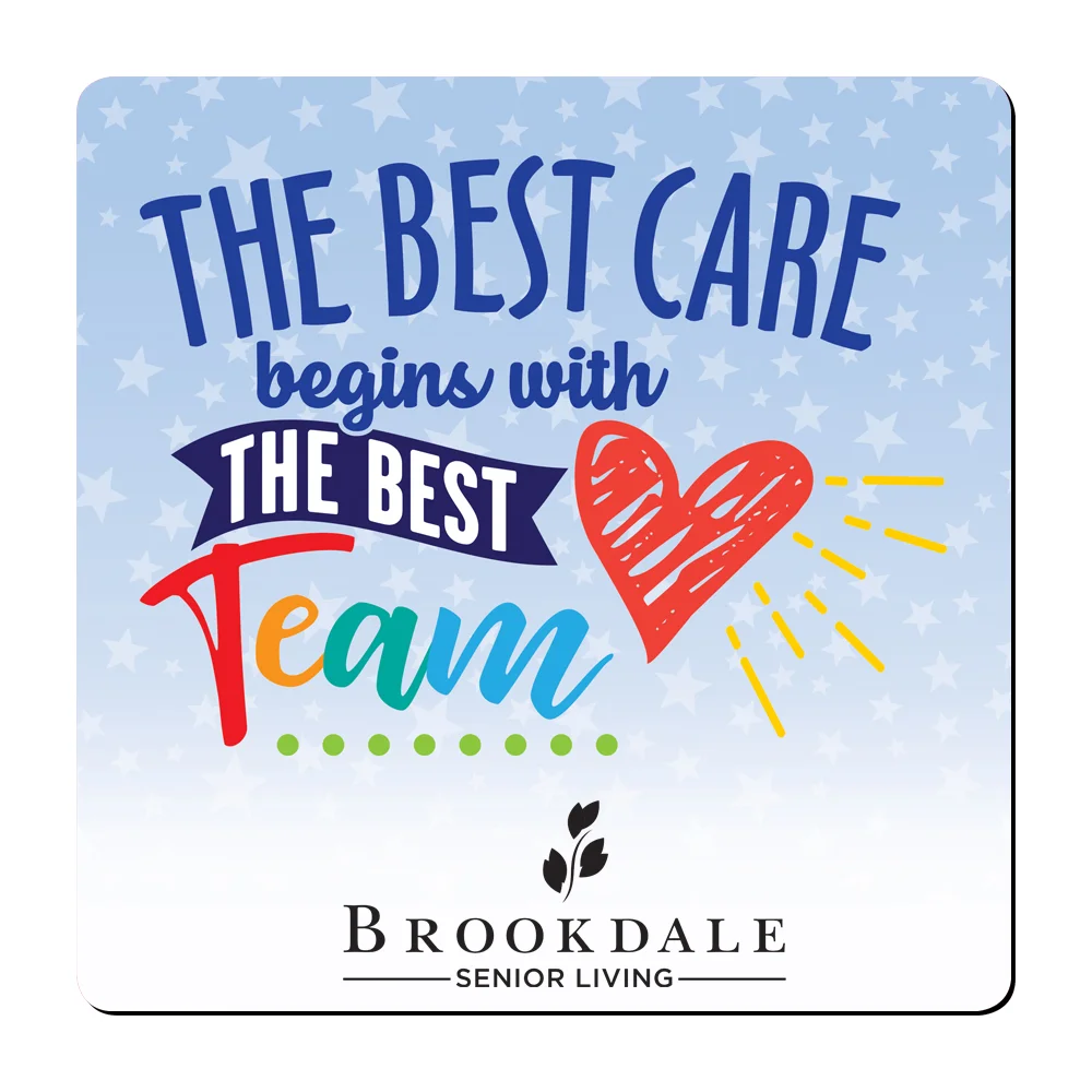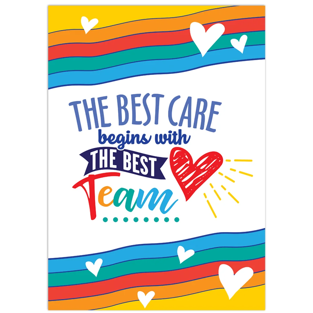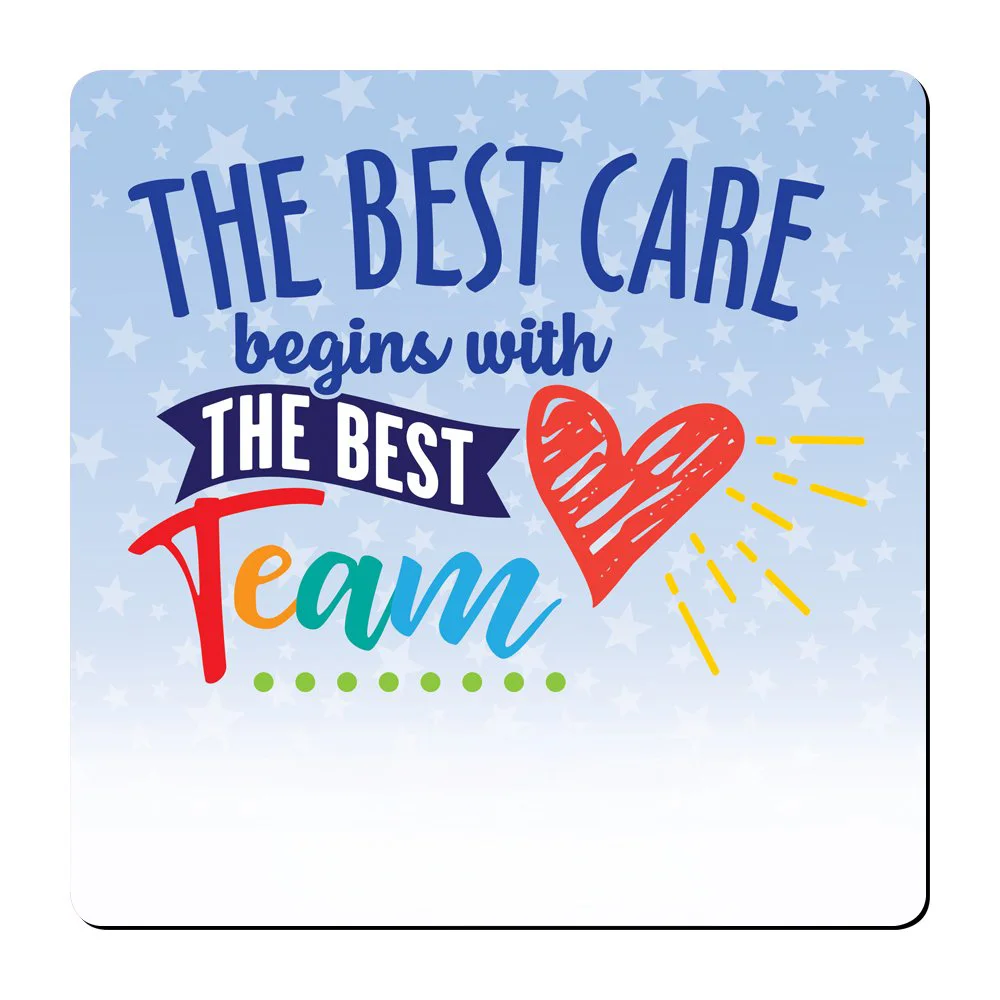 Features our exclusive The Best Care Begins With the Best Team design on the card & magnet