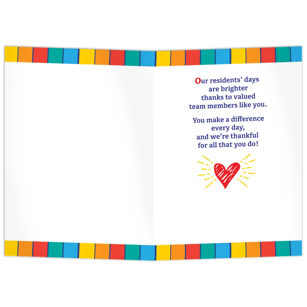 Verse inside card: Our residents' days are brighter thanks to valued team members like you. You Make a difference every day, and we're thankful for all that you do!