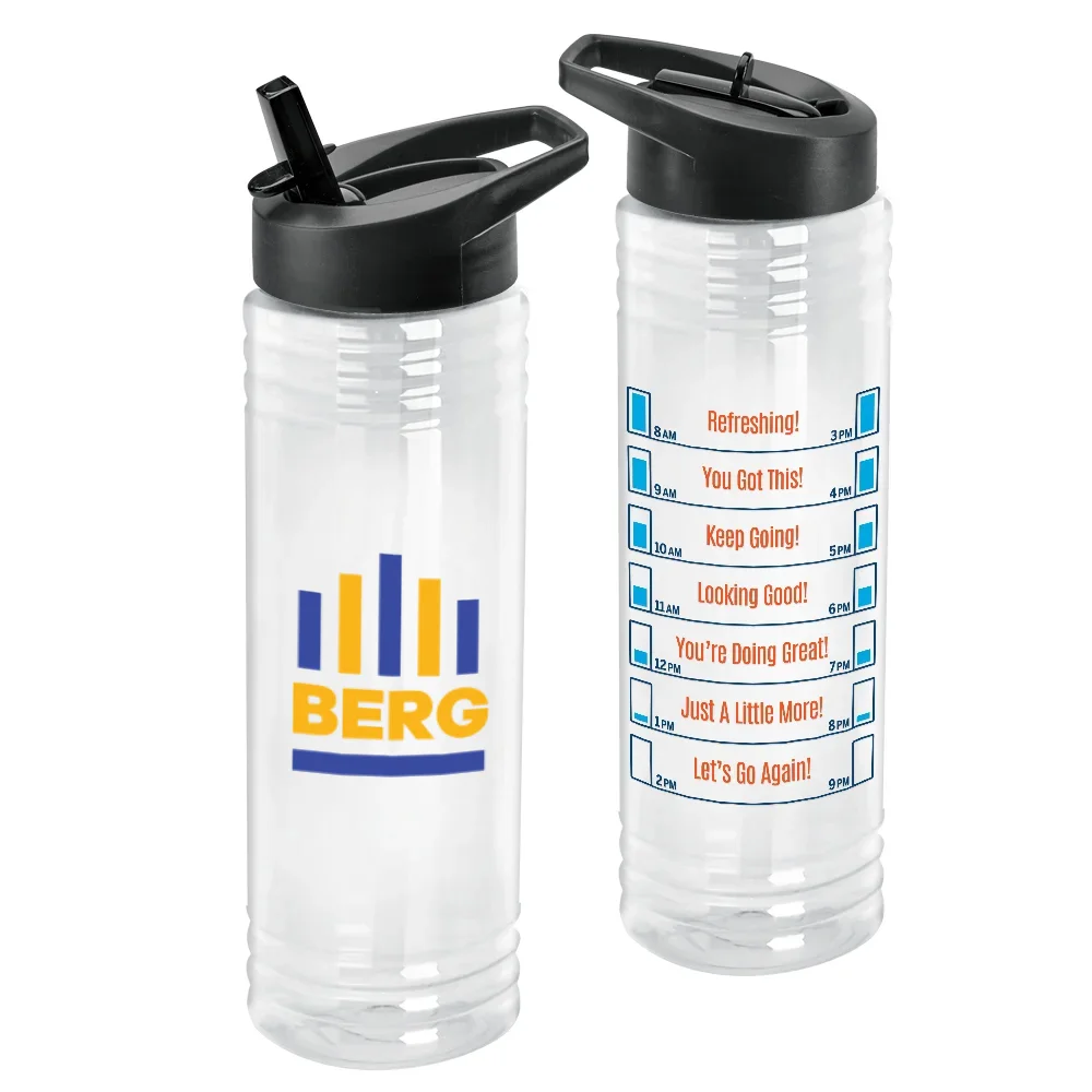 Personalized 24-oz. Bottle: Durable, lightweight, plastic sport bottle for healthful, grab-and-go hydration; Pop-up, flip straw spout; Sport sipper lid with integrated carry handle; Wide mouth; Easy to fill with beverage, ice, or powdered drinks; Easy to clean; Eco friendly; Reusable; BPA free; Note: Hand wash recommended