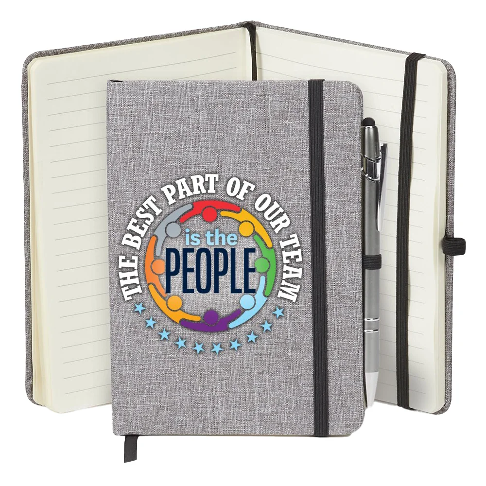 • 3-piece gift set includes: Heathered Journal With Quotes & Stylus Pen, Malibu Non-Woven Zippered Tote Bag, & Solara Water Bottle 24 oz.