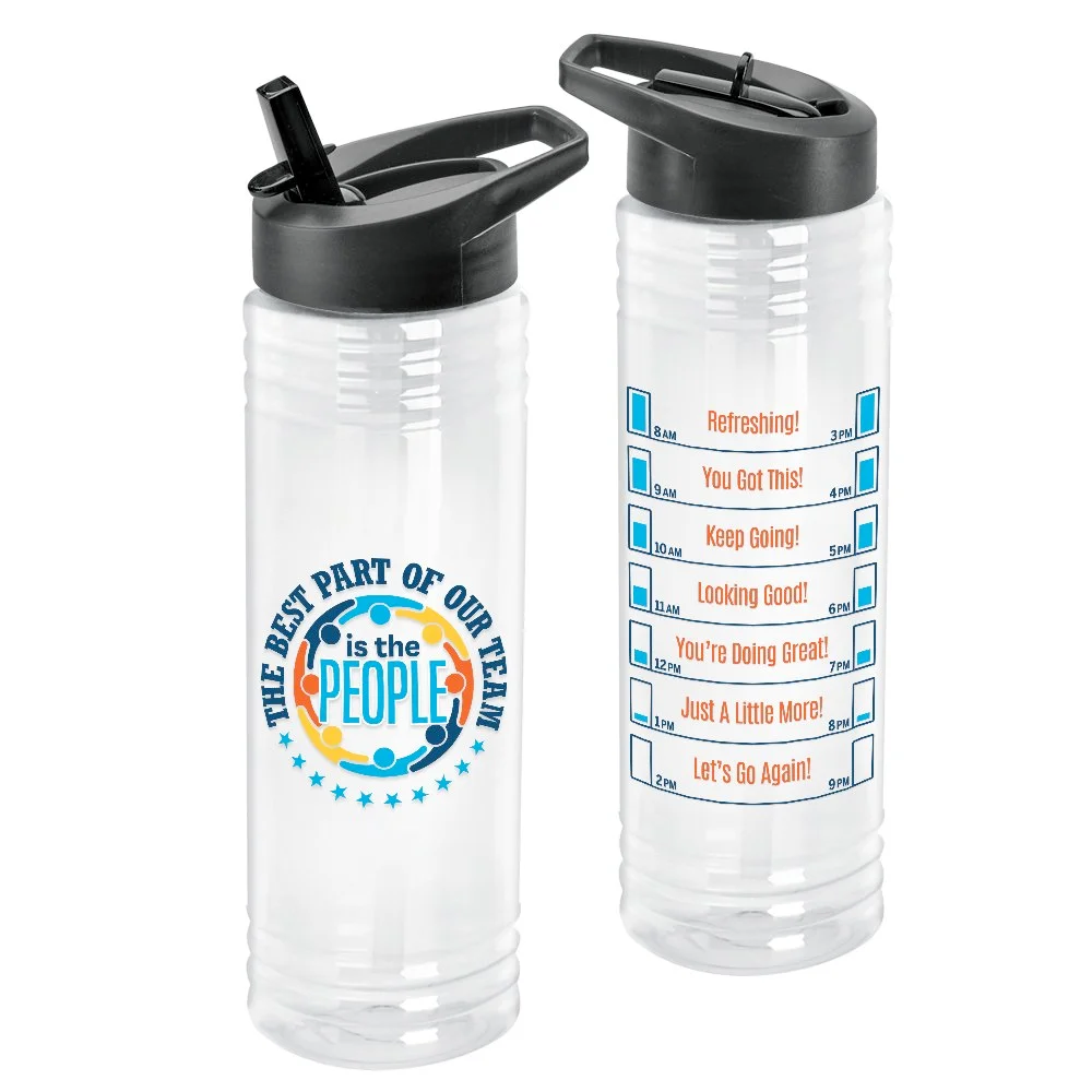 • 24-oz. Bottle: Durable, lightweight, plastic sport bottle for healthful, grab-and-go hydration; Pop-up, flip straw spout; Sport sipper lid with integrated carry handle; Wide mouth; Easy to fill with beverage, ice, or powdered drinks; Easy to clean; Eco friendly; Reusable; BPA free; Note: Hand wash recommended