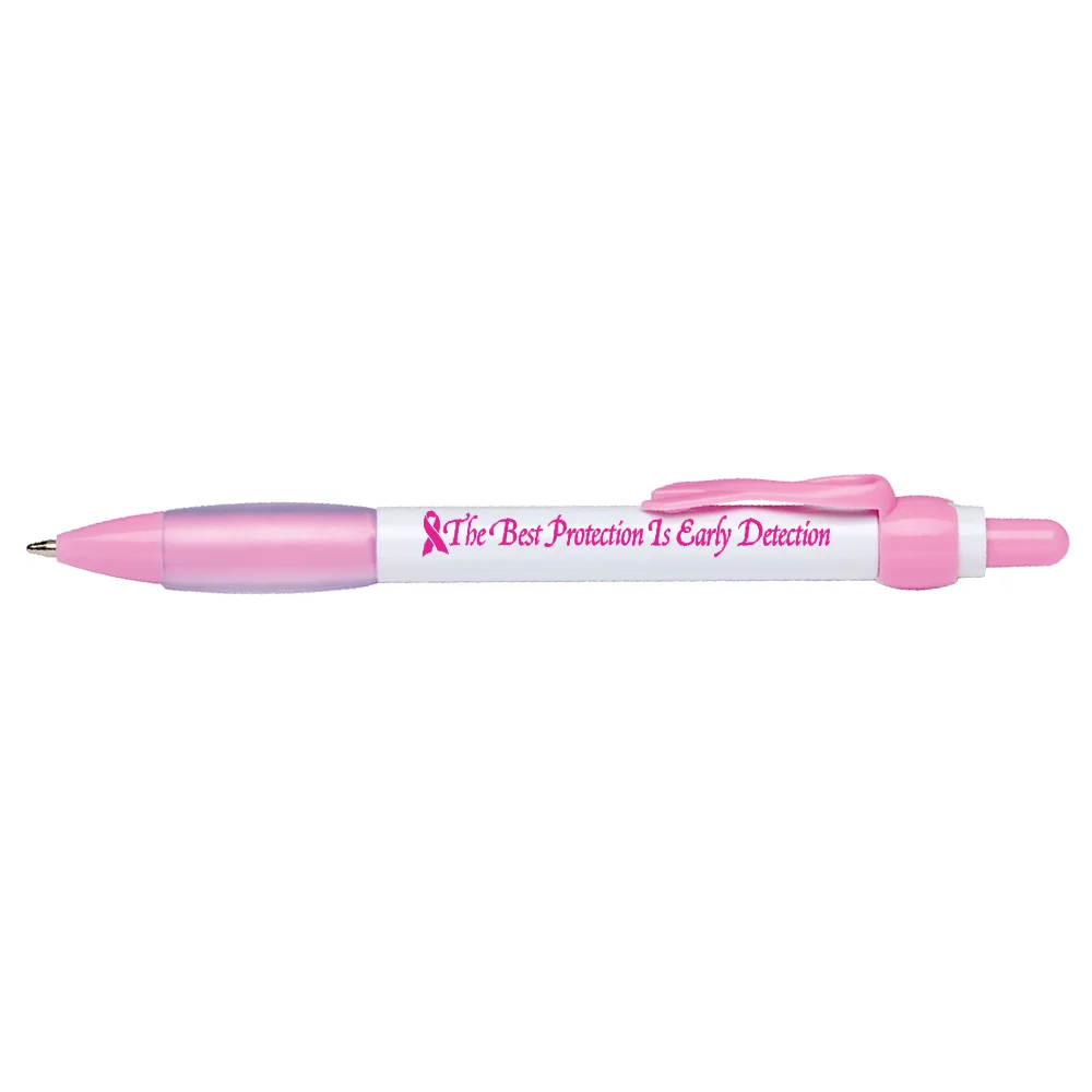 The Best Protection Is Early Detection Jasmine Pink Ribbon Clip Pen - One-Color Personalization Available