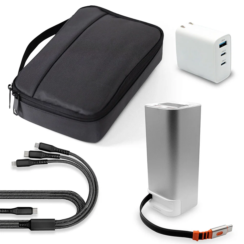 Powerbank: 2.5"W X 0.375"H, Adapter: 1.5"W X 1.25"H, Bag: 5"W X 2"H, Charging Cable: 0.875"W X 2.25"H, Up To 2 Lines/Logo; 25 Characters Max Per Line