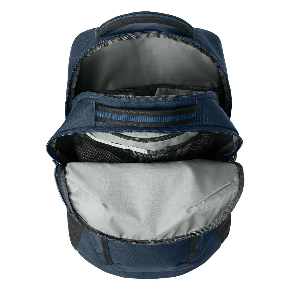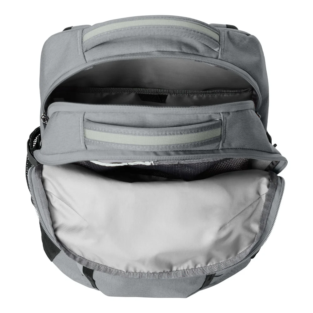 Updated front compartment offers simplified organization and maintains essential features for storage such as secure-zip pockets, tablet sleeve and key fob