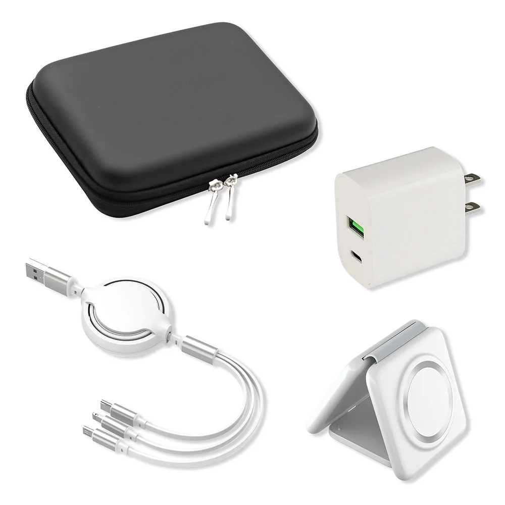 • P15 (Premium Large Zipper Case) + QC958 (MagSafe 3-in-1 charging station) + AD222 (Dual Port Adaper) + ED818 (Retractable 3-in-1 Charging Cable)