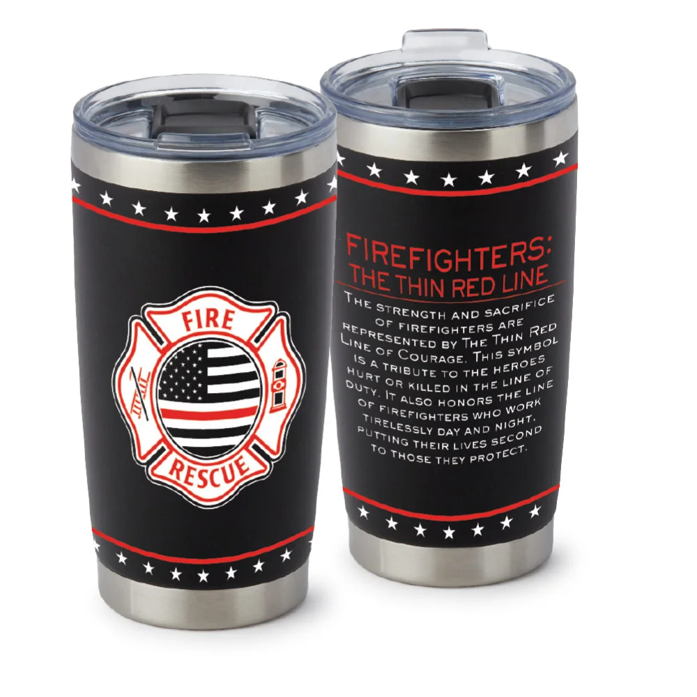 • Features our exclusive The Thin Red Line design on the front; Explanation of The Thin Red Line on the back
