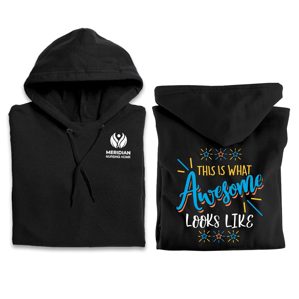 Features our exclusive This Is What Awesome Looks Like design on the back of the Hoodie; Warm Thanks for All You Do on the Quilted Tote