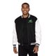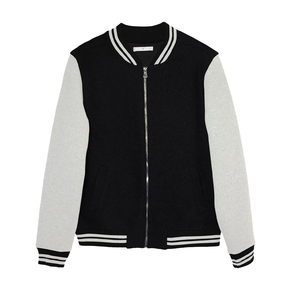 • Knitted collar, cuffs, and waistband with matching stripes