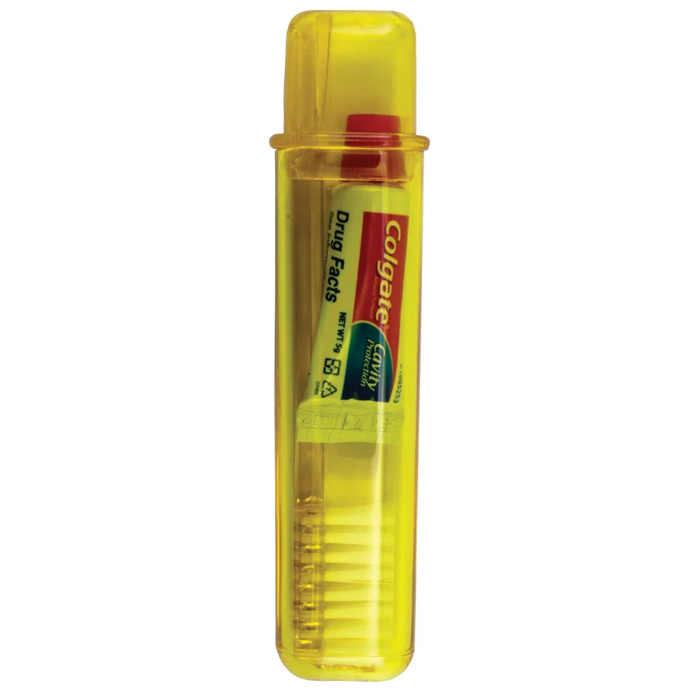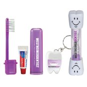 • Use the included toothbrush, toothpaste, and tooth-shaped floss keychain for dental hygiene anywhere