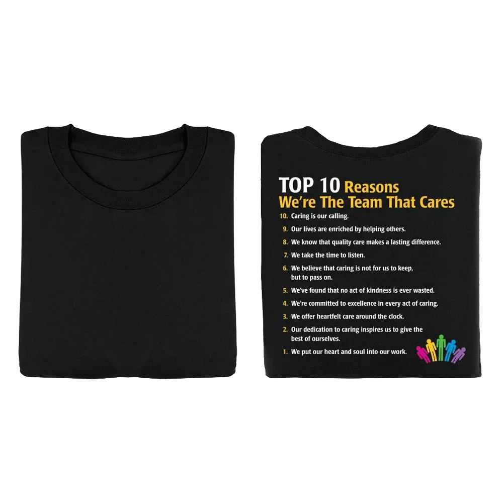 Top 10 Reasons We're The Team That Cares 2-SIded T-Shirt - Personalization Available