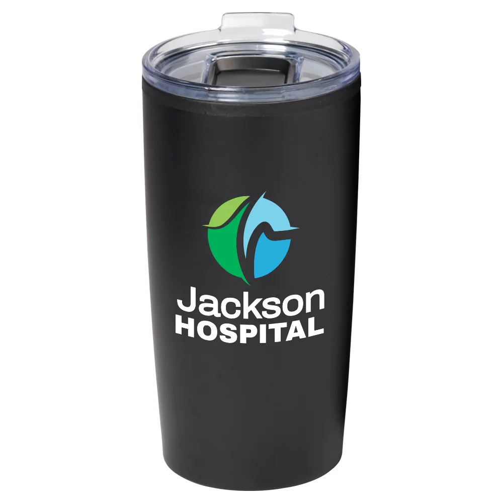 Personalized 20-Oz. Tumbler: Double-wall insulated: stainless-steel exterior with a polypropylene liner; Keeps drinks hot or cold for several hours; Snap-on, spill-resistant, thumb-slide lid with rubber gasket; Eco friendly; BPA free; Reusable; Holds 18 oz. with lid on, 20 oz. with lid removed; Appreciation verse on back; Note: Do not microwave; Hand wash recommended