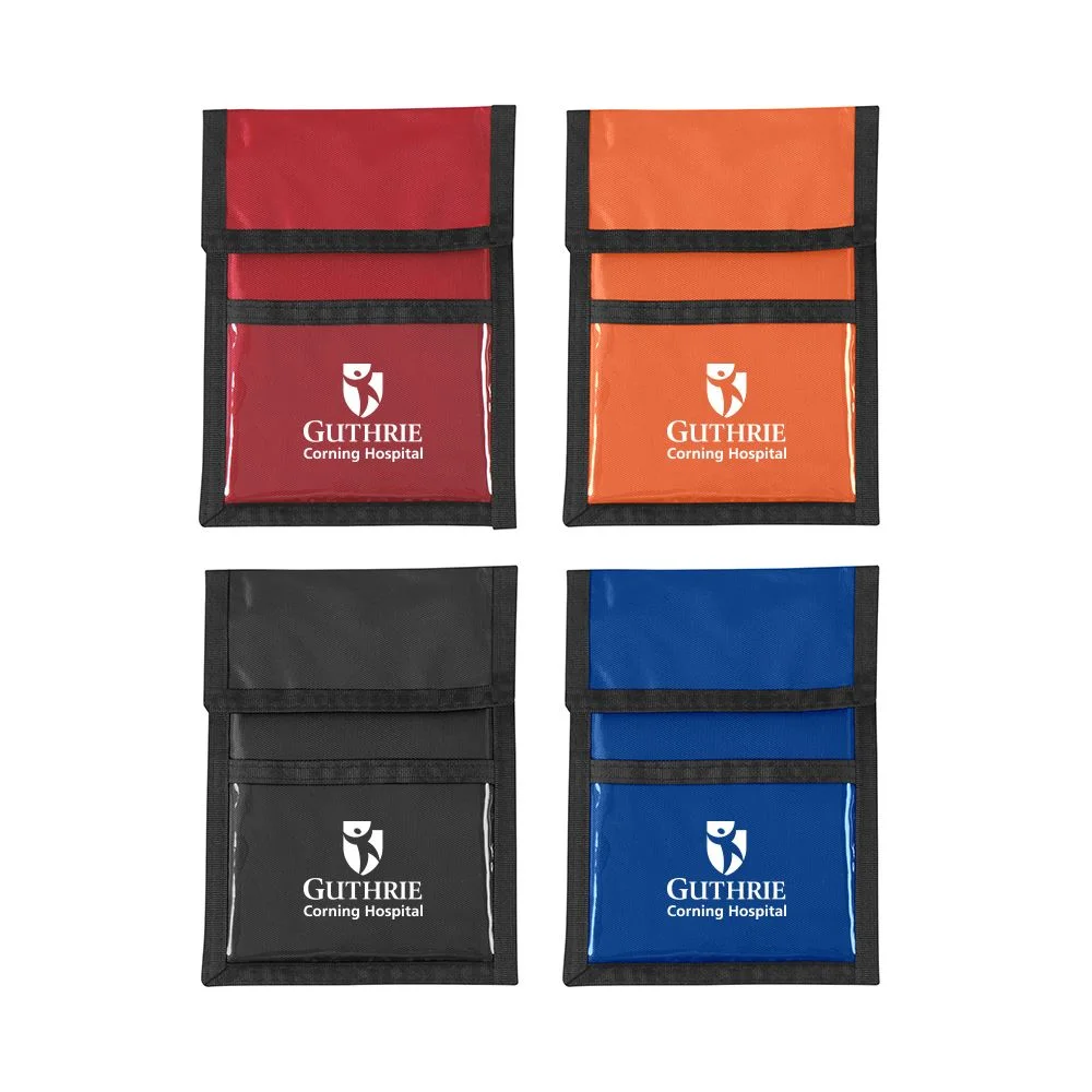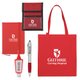 Tote Bag: 9" W X 9", Hand Sanitizer: 1.375"W X 0.625"H, Notebook: 3"W X 5"H, Wallet: 3" W X 1"H, Pen: 1.25"W X .5"H, Up To 5 Lines/Logo; 38 Characters Max Per Line