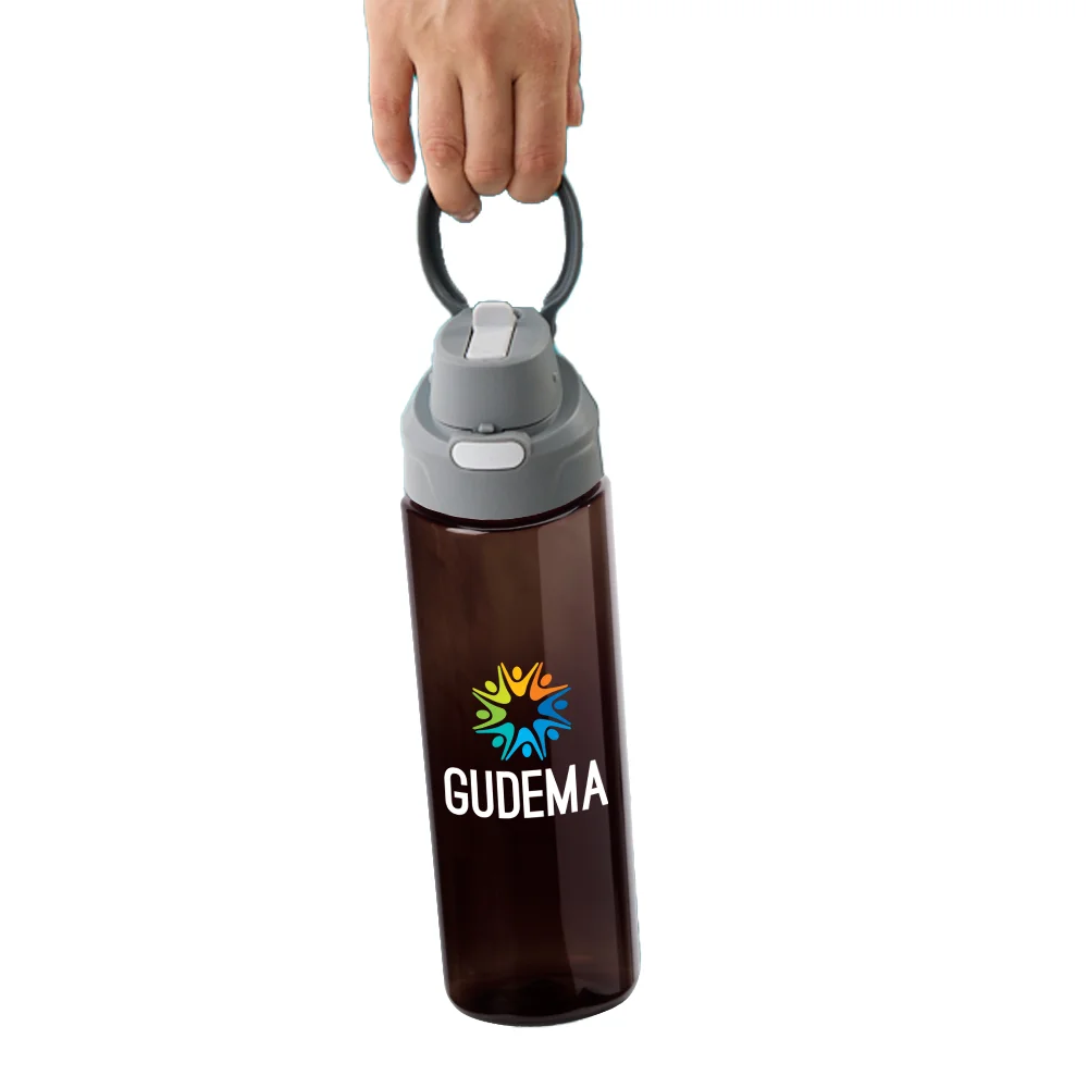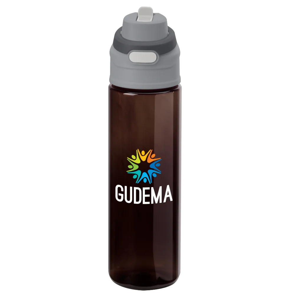 Personalized 28-oz. Water Bottle: Dual-function, push-button, spill-proof locking lid; Sip: flip up built-in spout to sip through internal straw; Chug: push button to unlock lid and access the wide opening; Extra-wide mouth for easy filling and cleaning; Easy-carry loop built into lid; Tough, impact-resistant, and shatter-resistant Tritan™; Eco friendly; Reusable; BPA free; Note: Hand wash recommended