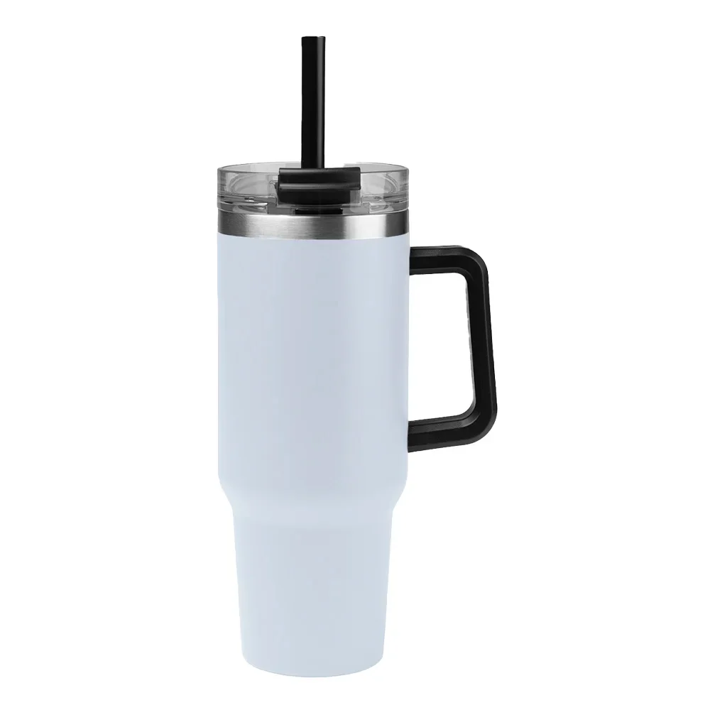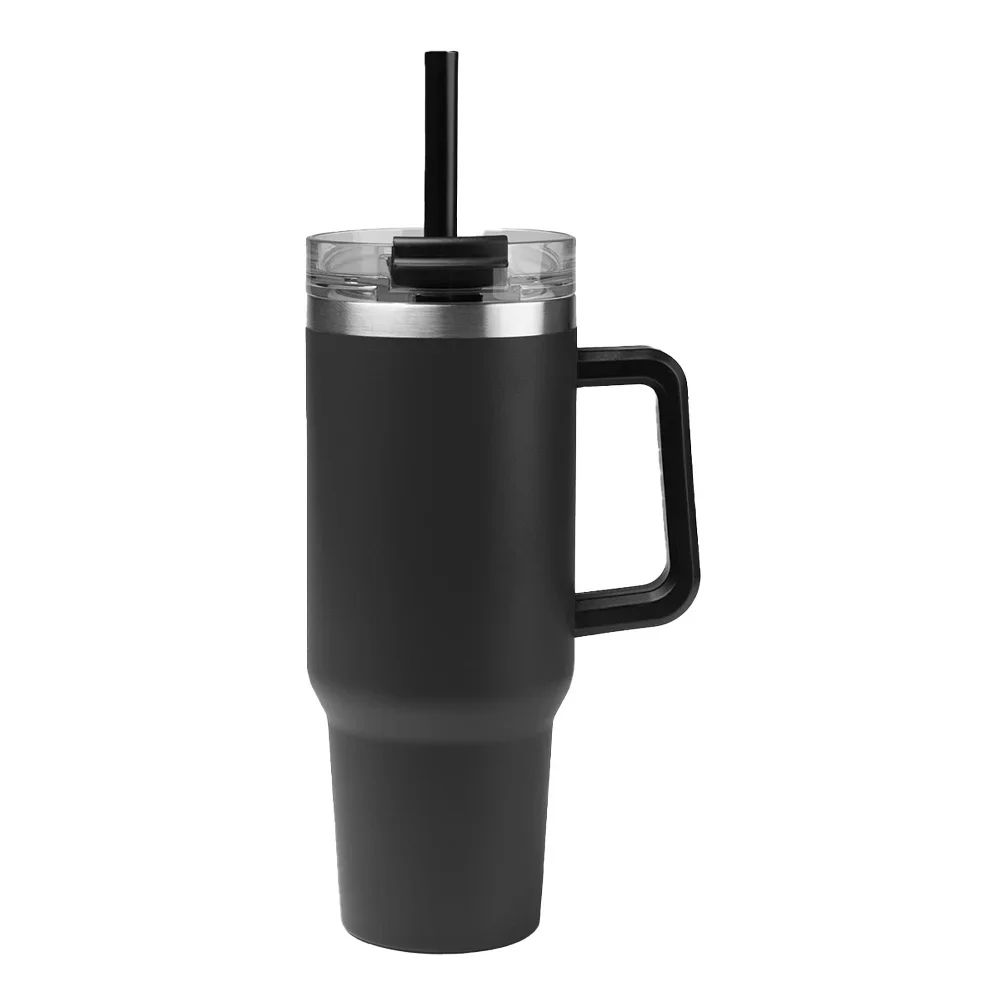Personalized 40-oz. Tumbler: Double-walled stainless steel; Powder-coated finish; Sturdy carry handle; Vacuum insulated; Keeps drinks cold up to 24 hours and hot up to 8 hours; Screw-on, spill-resistant lid with straw hole; 12" reusable straw included; Eco friendly; Reusable; BPA free; Meets FDA requirements; Note: Hand wash recommended