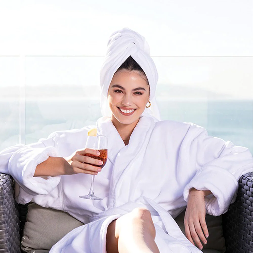 • Your customers and clients will cozy up to your logo every time they slip into this customizable robe!