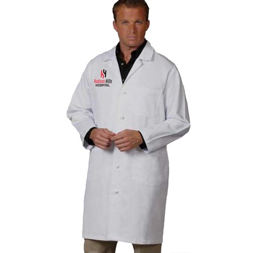 Unisex Three-Pocket 41" Full-Length Knot Button Lab Coat - Embroidered Personalization Available