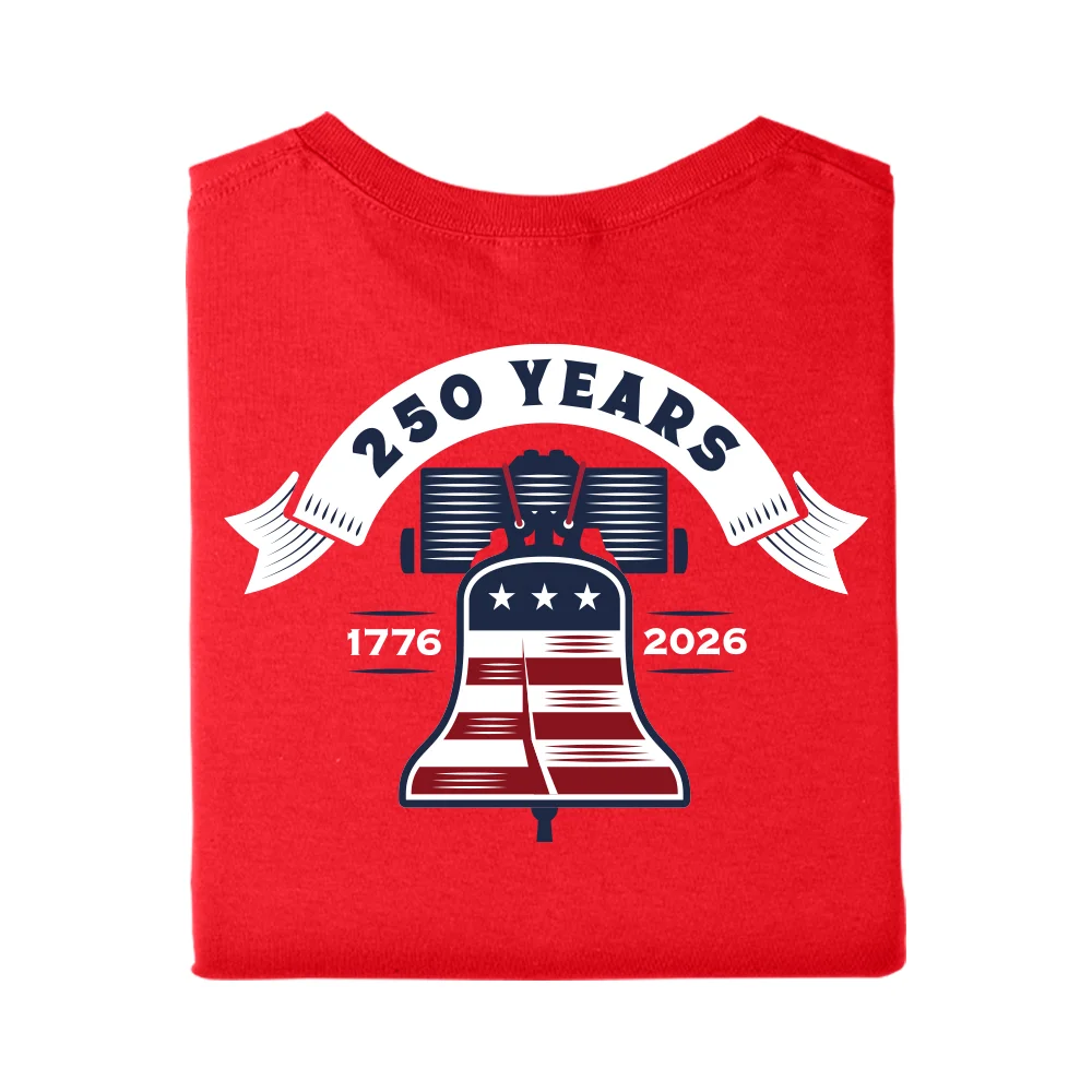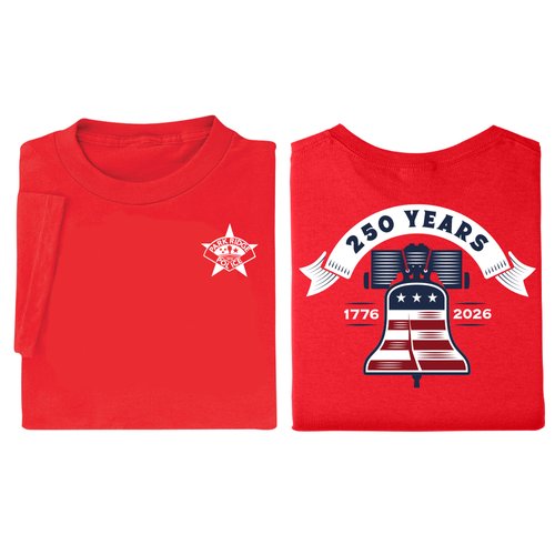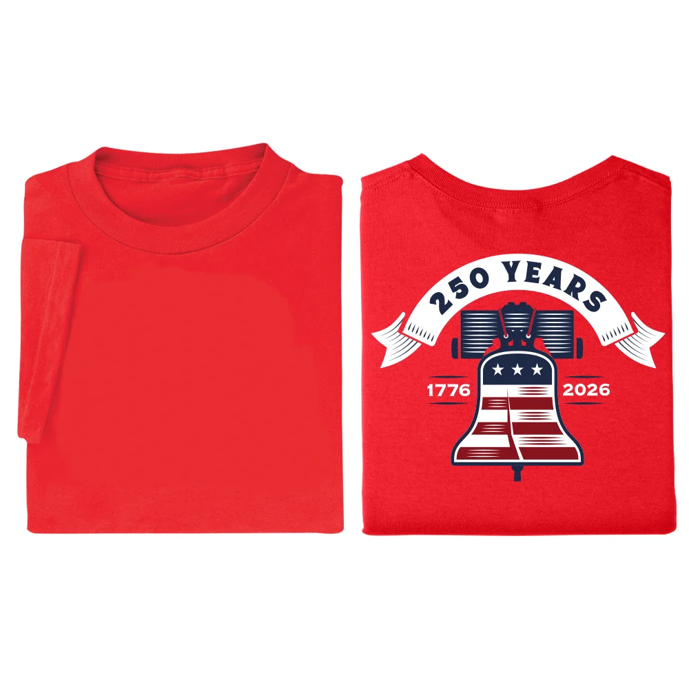 USA 250th Anniversary Liberty Bell Red Unisex 2-Sided Short-Sleeved T-Shirt in Gift Box - Silkscreened Personalization Available