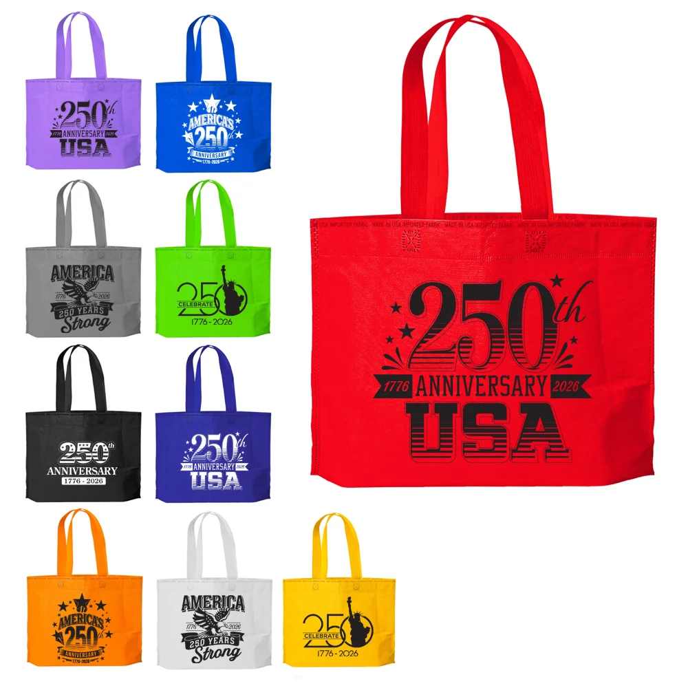 USA 250th Anniversary Non-Woven Reusable Gusset Bag 85-gsm. - One-Color Personalization Available