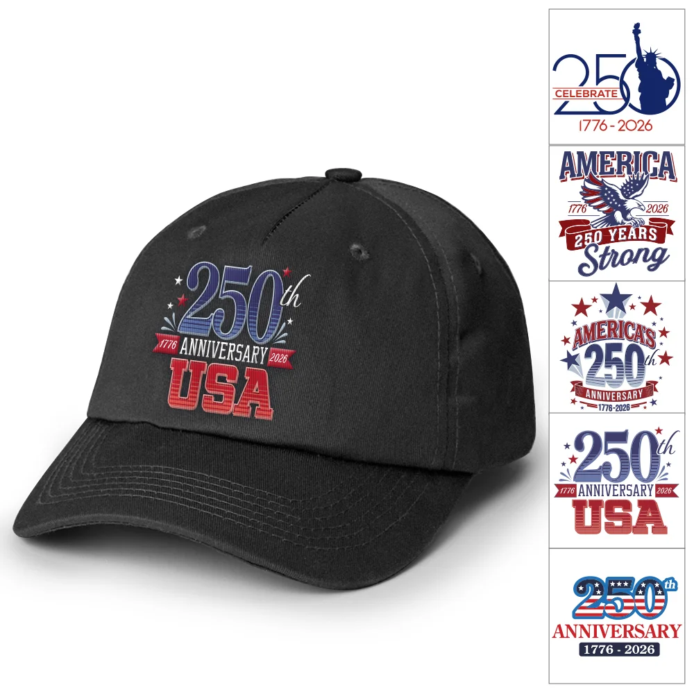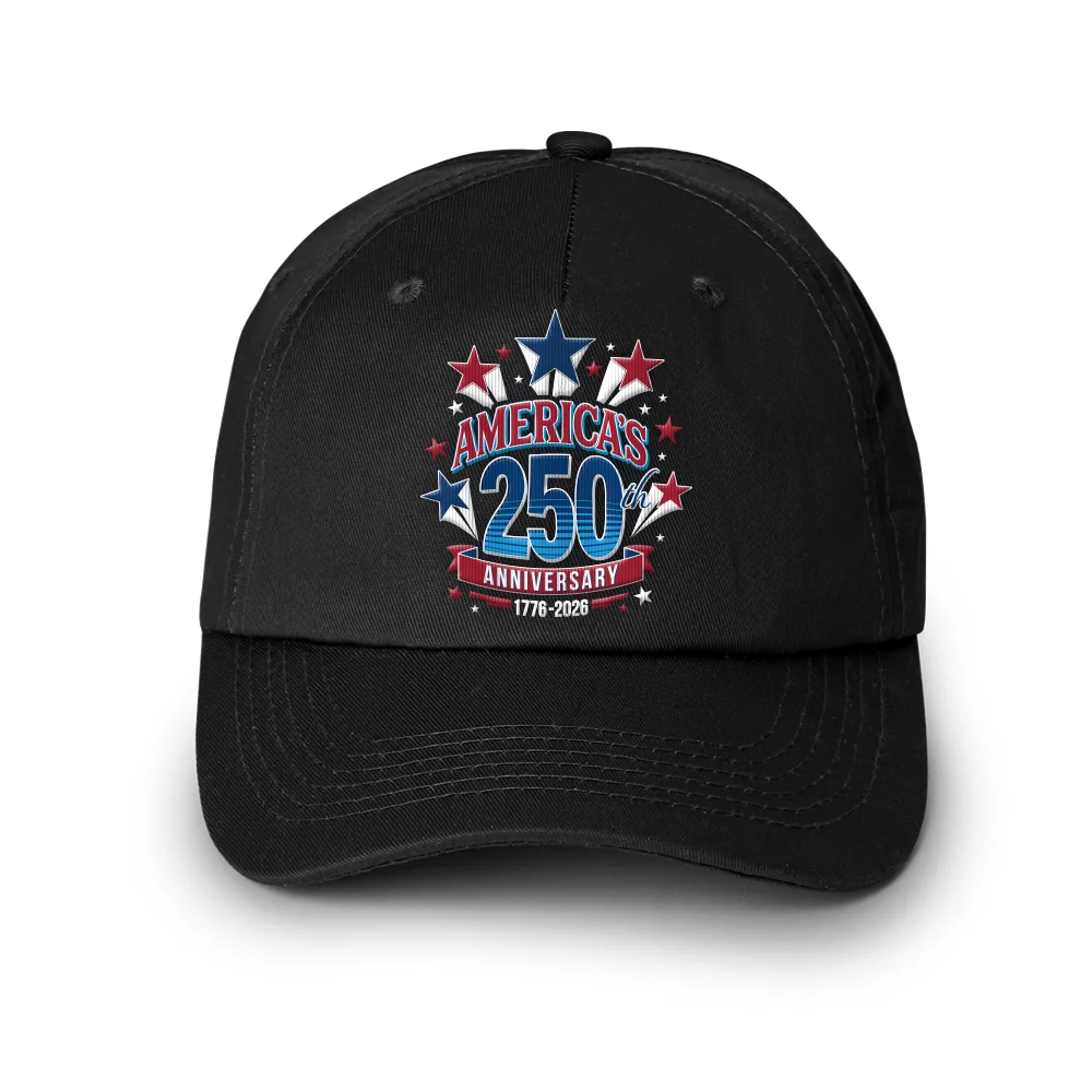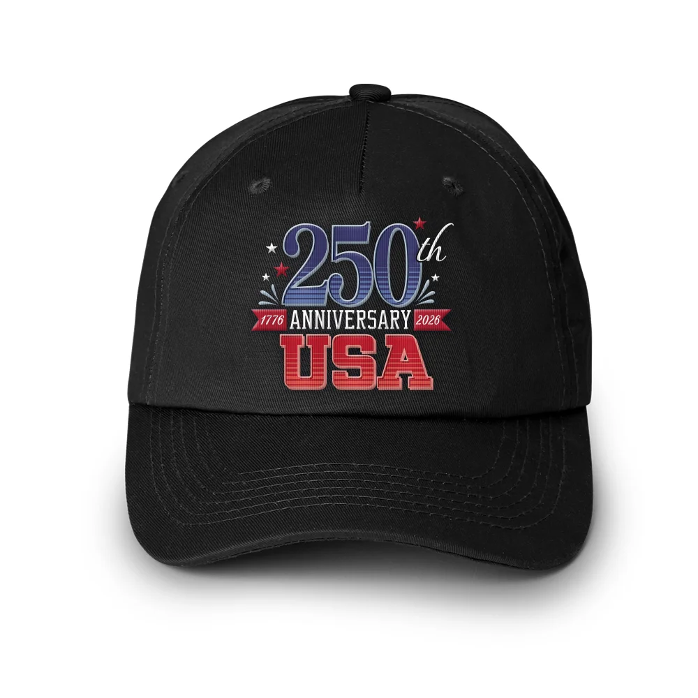 USA 250th Anniversary Positive Wear Black Classic Unstructured Dad's Cap With Buckle Closure - Embroidered Personalization Available