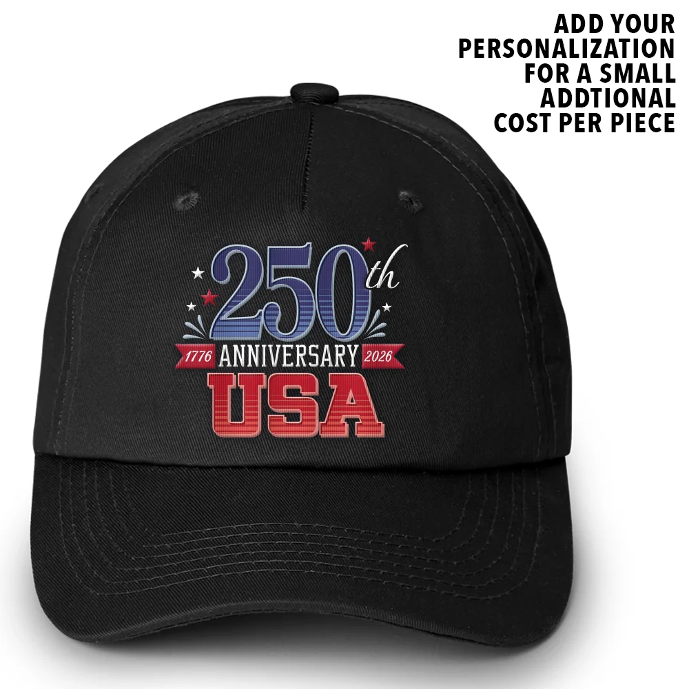 • Add one of our exclusive USA 250th Anniversary designs and/or your custom embroidered personalization