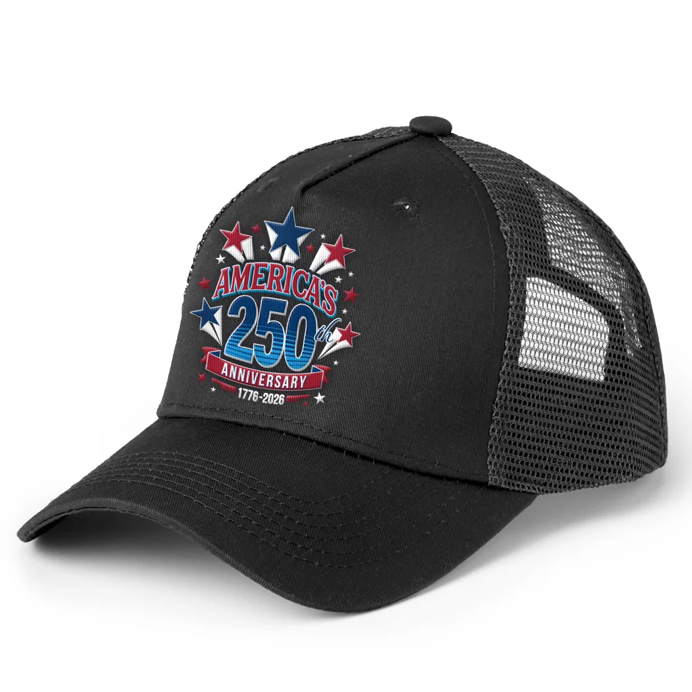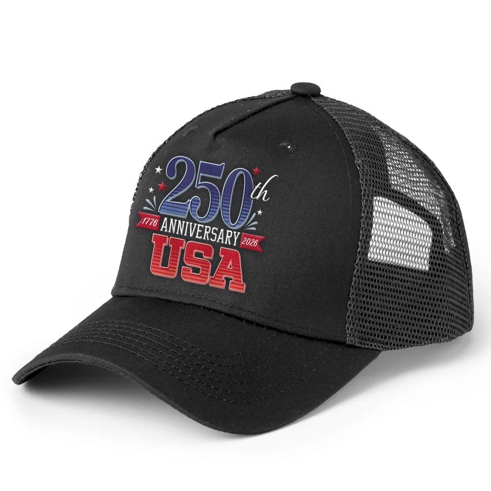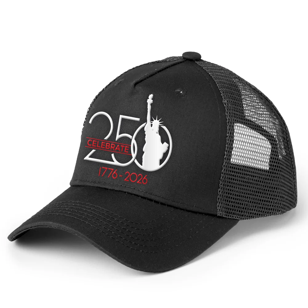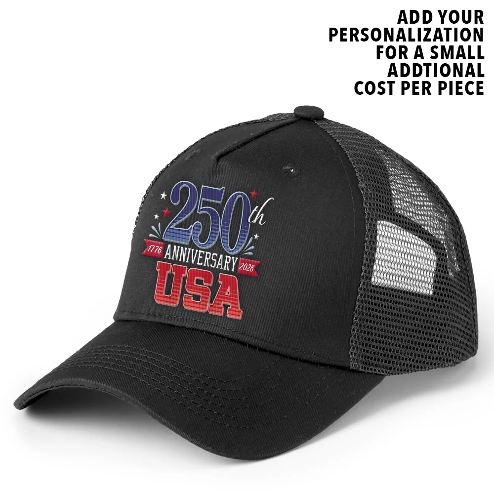USA 250th Anniversary Positive Wear Black Trucker Cap - Embroidered Personalization Available