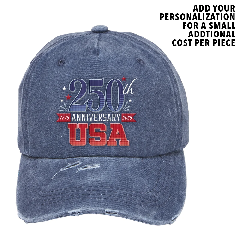• Add one of our exclusive USA 250th Anniversary designs and/or your custom embroidered personalization