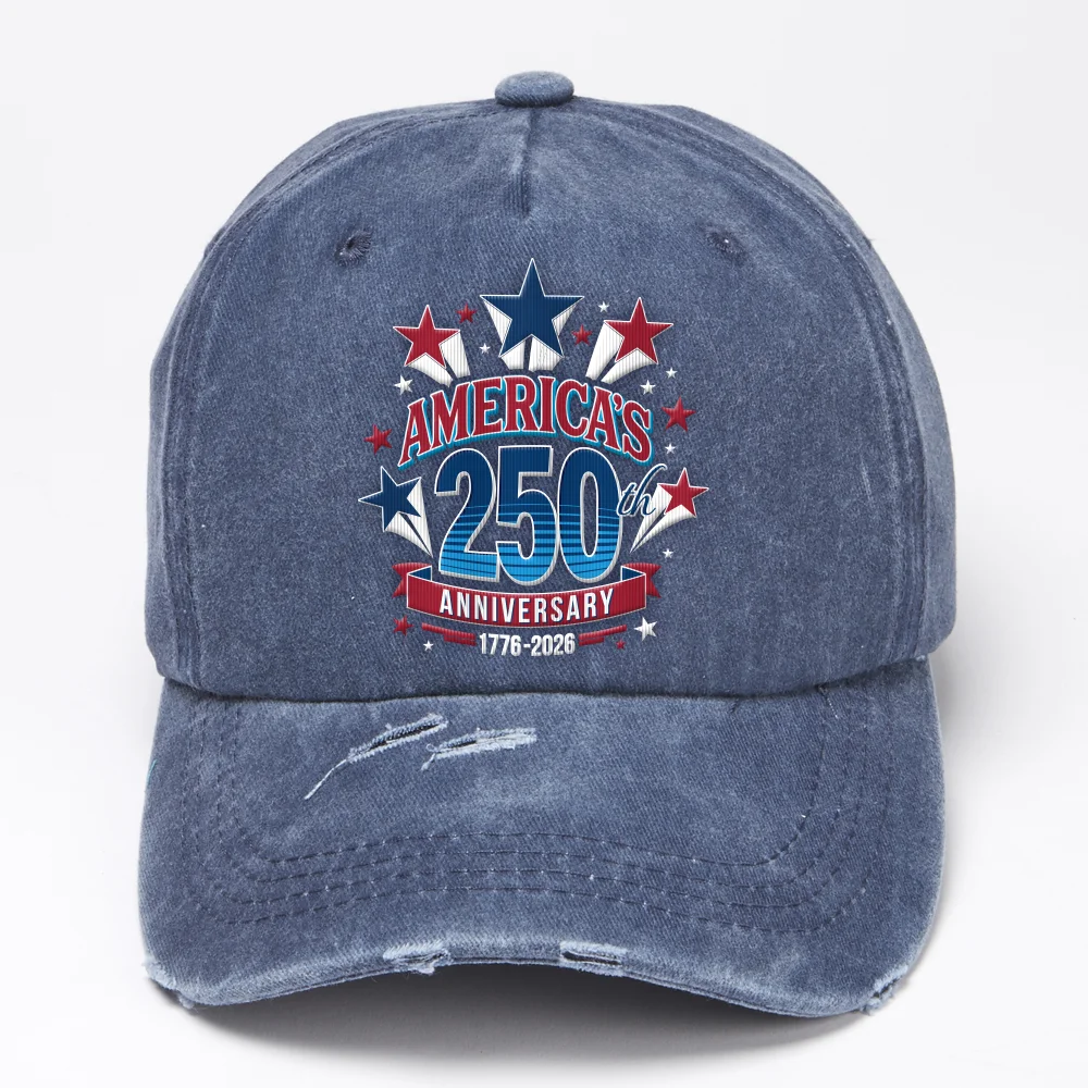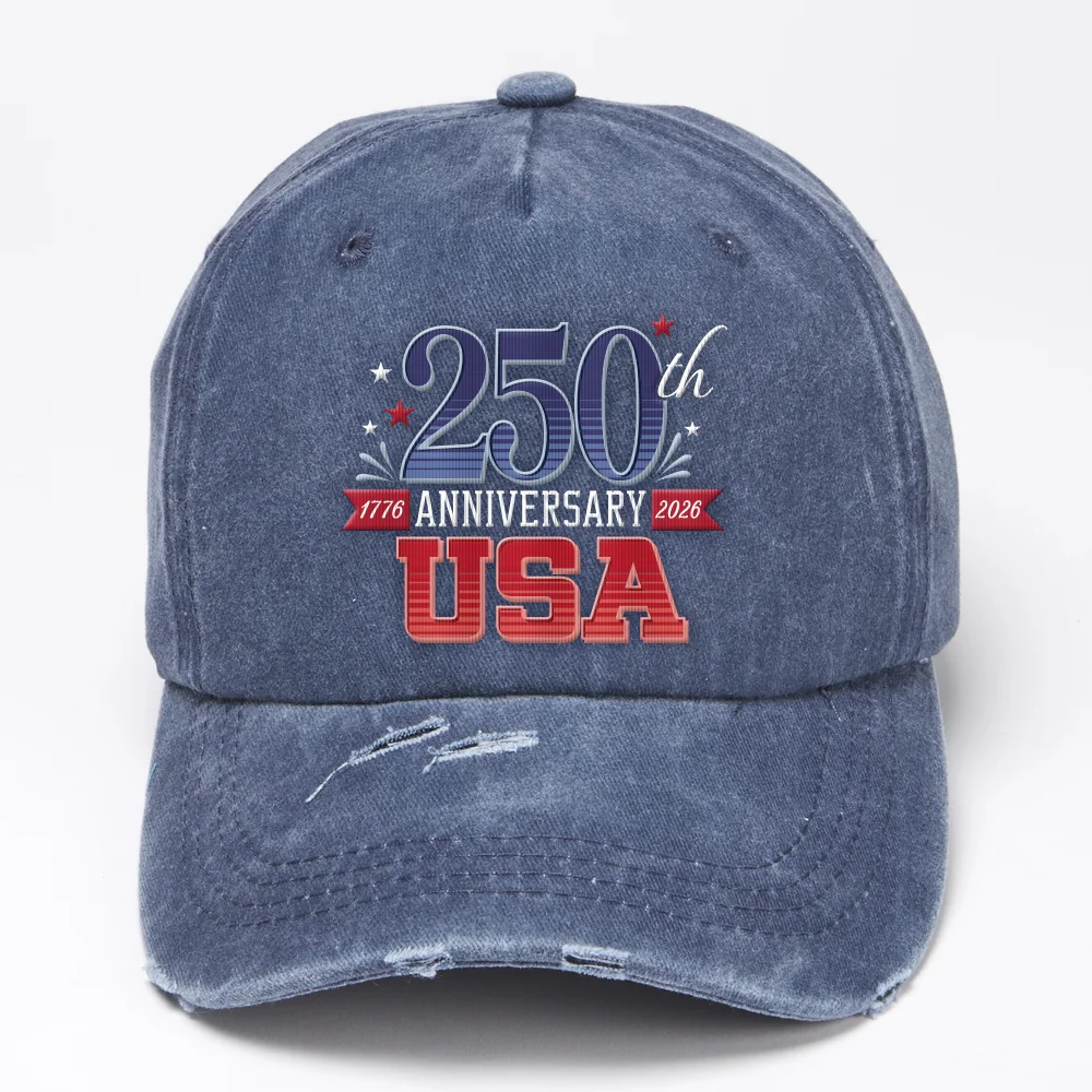 USA 250th Anniversary Positive Wear Navy Distressed Unstructured Baseball Cap - Embroidered Personalization Available