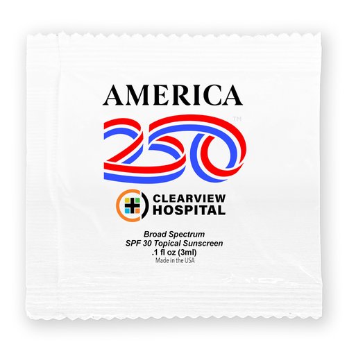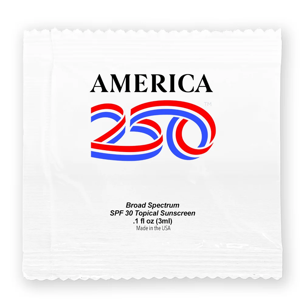 USA 250th Anniversary SPF-30 Sunscreen Packet 0.1 oz. - Full-Color Personalization Available