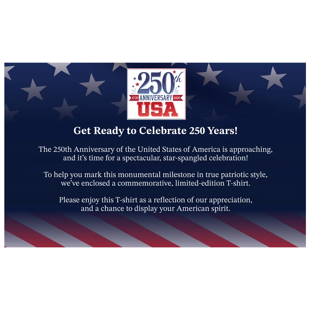 USA 250th Anniversary USA Navy Unisex 2-Sided Short-Sleeved T-Shirt in Gift Box - Silkscreened Personalization Available