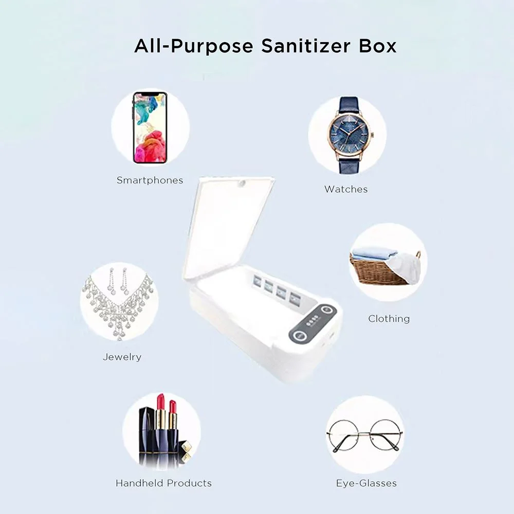 Immerse your smartphone and personal belongings into the sanitizing box to cleanse away germs and viruses