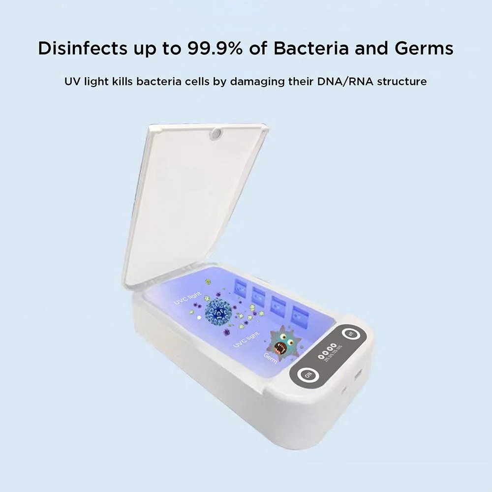 The UVC light technology help stop destroy the molecular structure of microorganisms on personal belongings such as cell phones, watches, and more