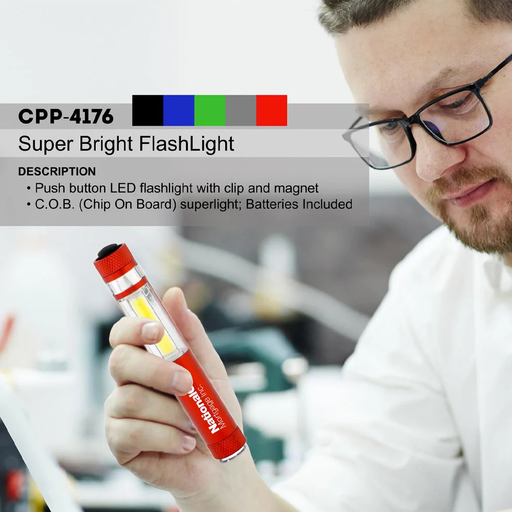 Value LED COB Flashlight With Clip & Magnet - Laser-Engraved Personalization Available