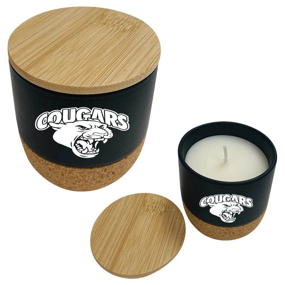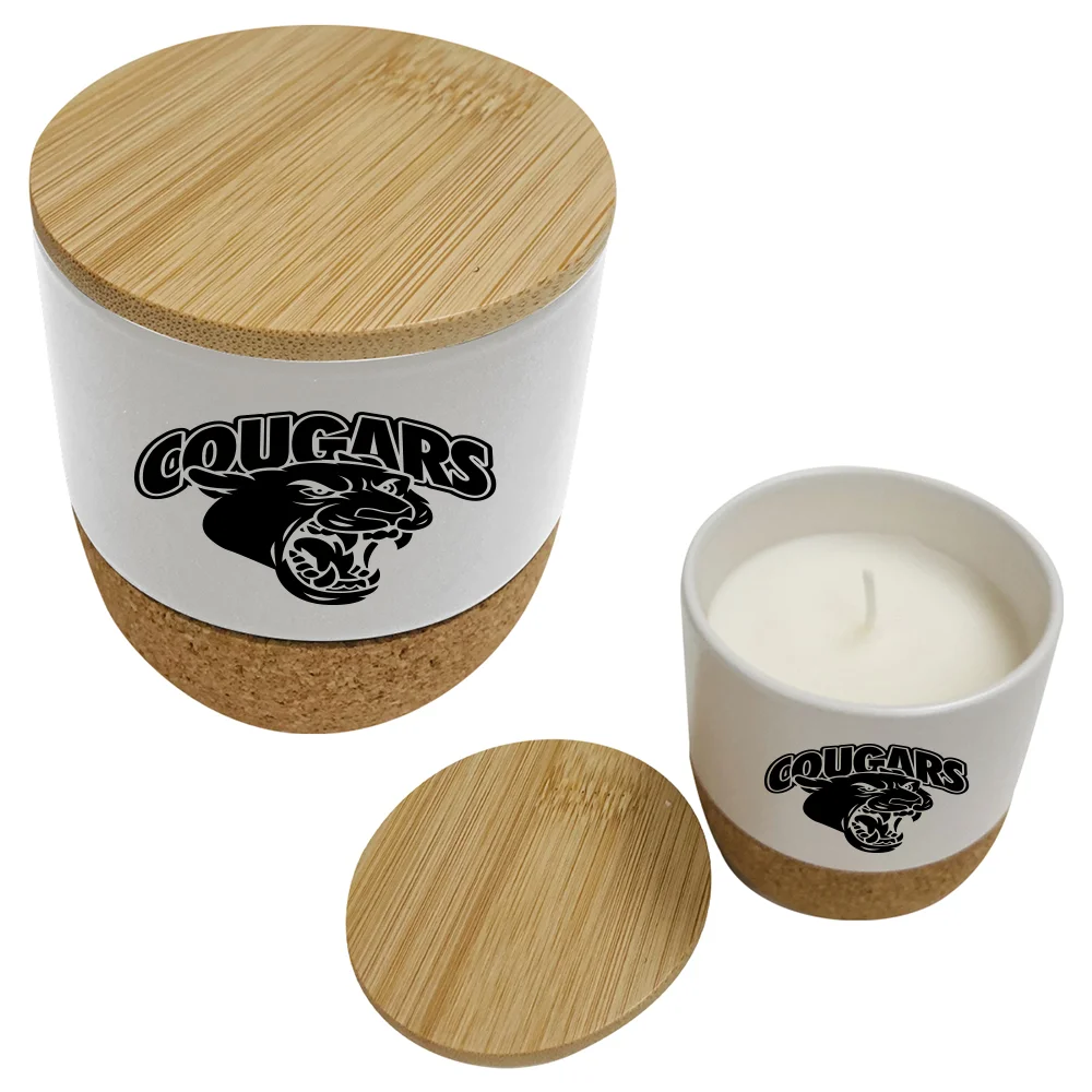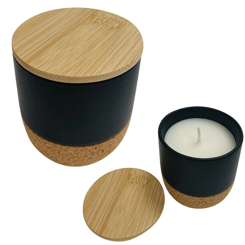• Single-wick candle in a ceramic holder with bamboo lid and cork base
